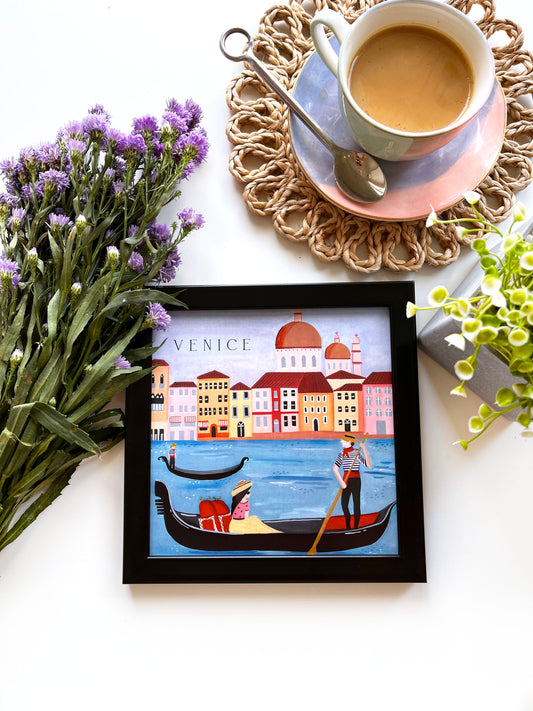 Wanderlust Wonders Wall Art Framed Set of 6- (Tuscany, Mount Fuji, Peru, Venice, Amsterdam, Cappadocia)