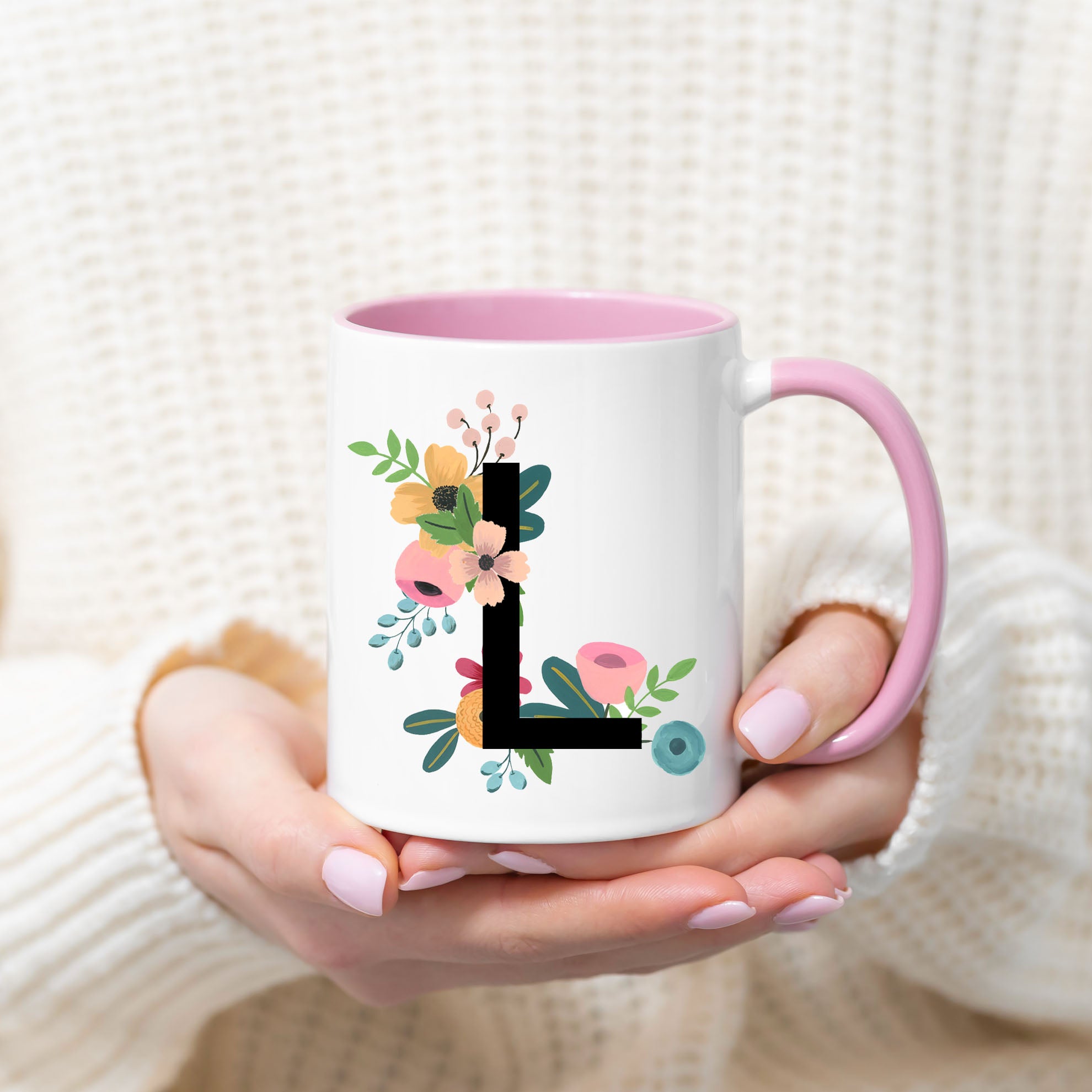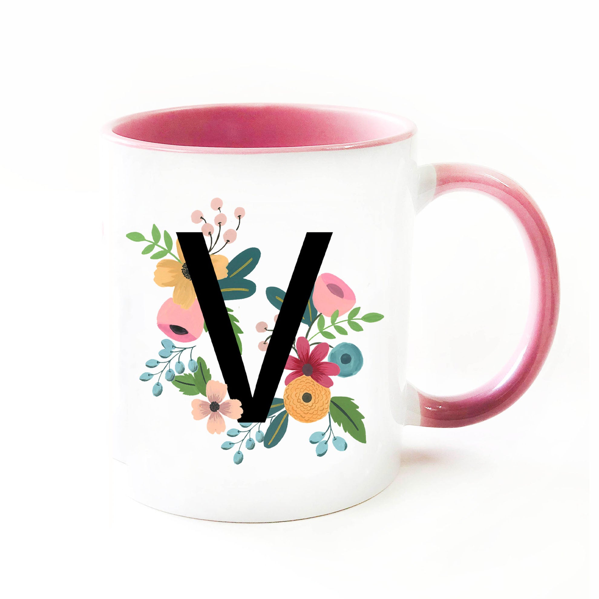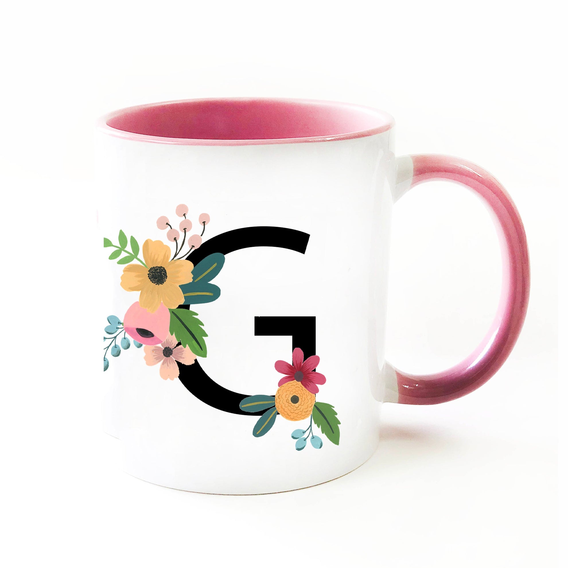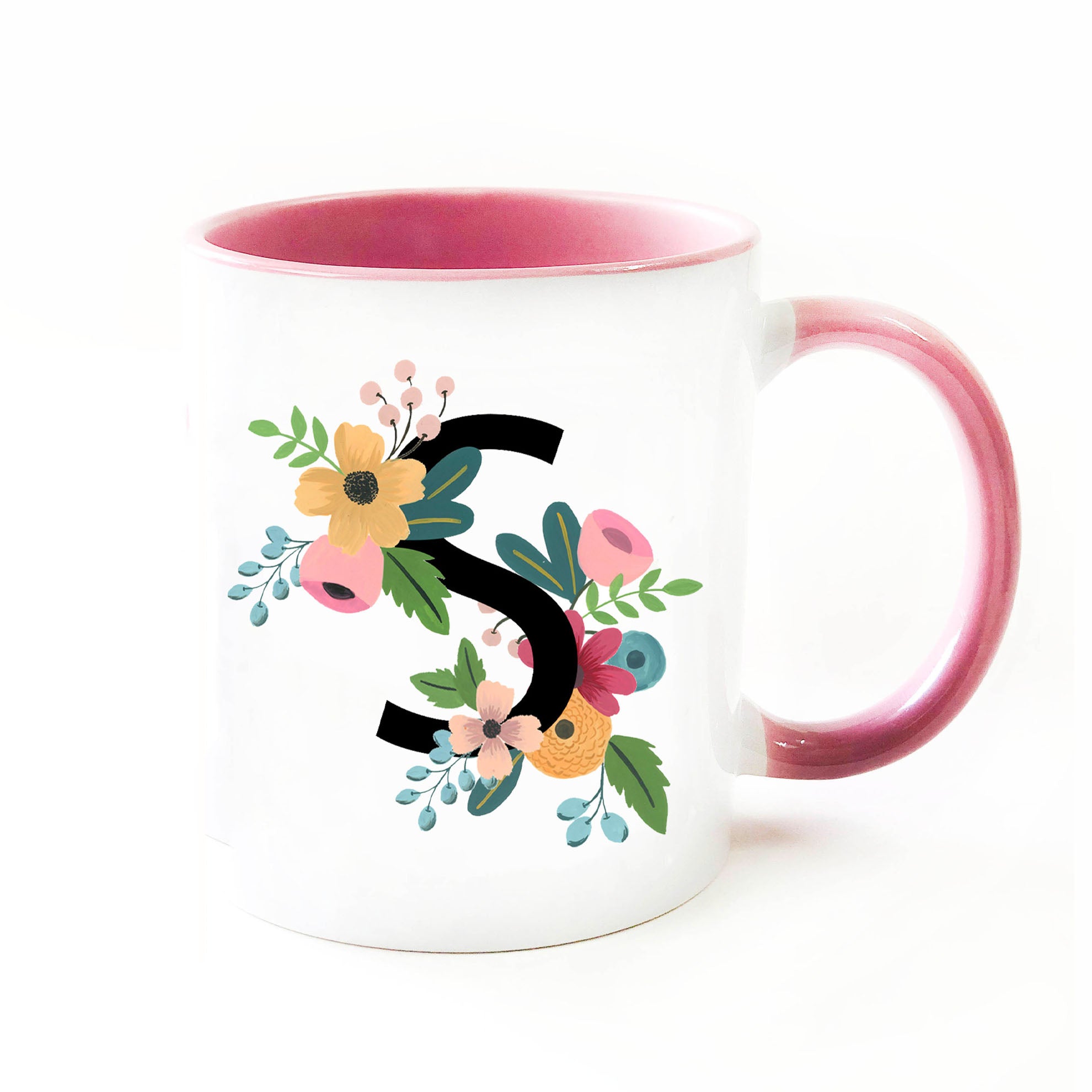 Little joys of life - This monogram mug is overflowing with florals, making it the perfect personalized mug for coffee- or tea-drinker.