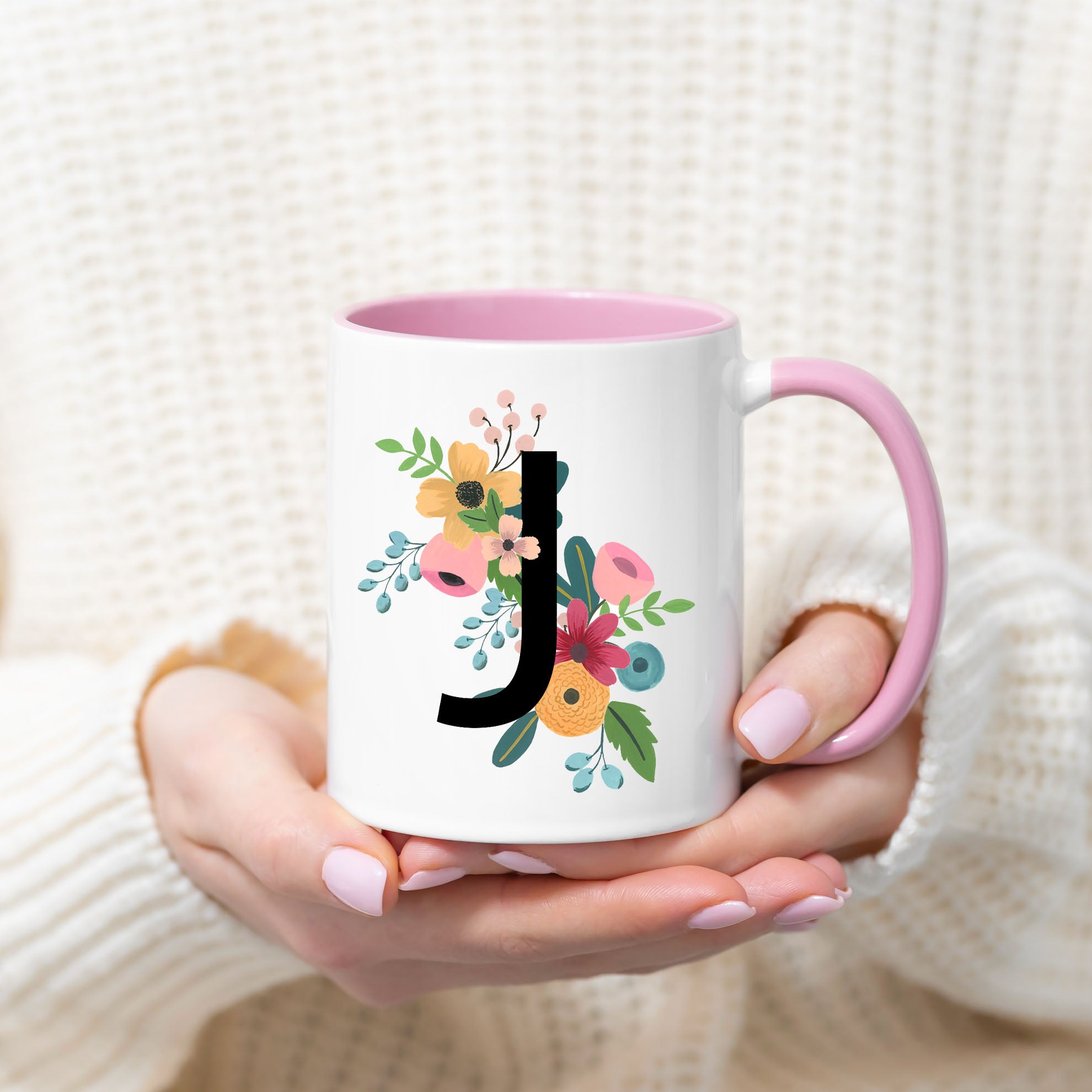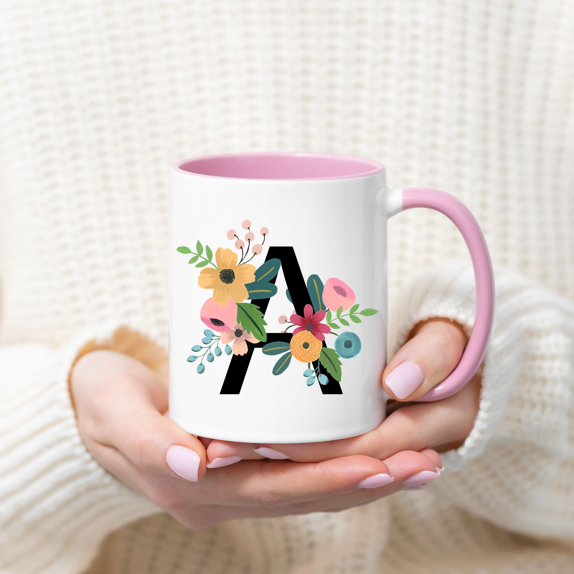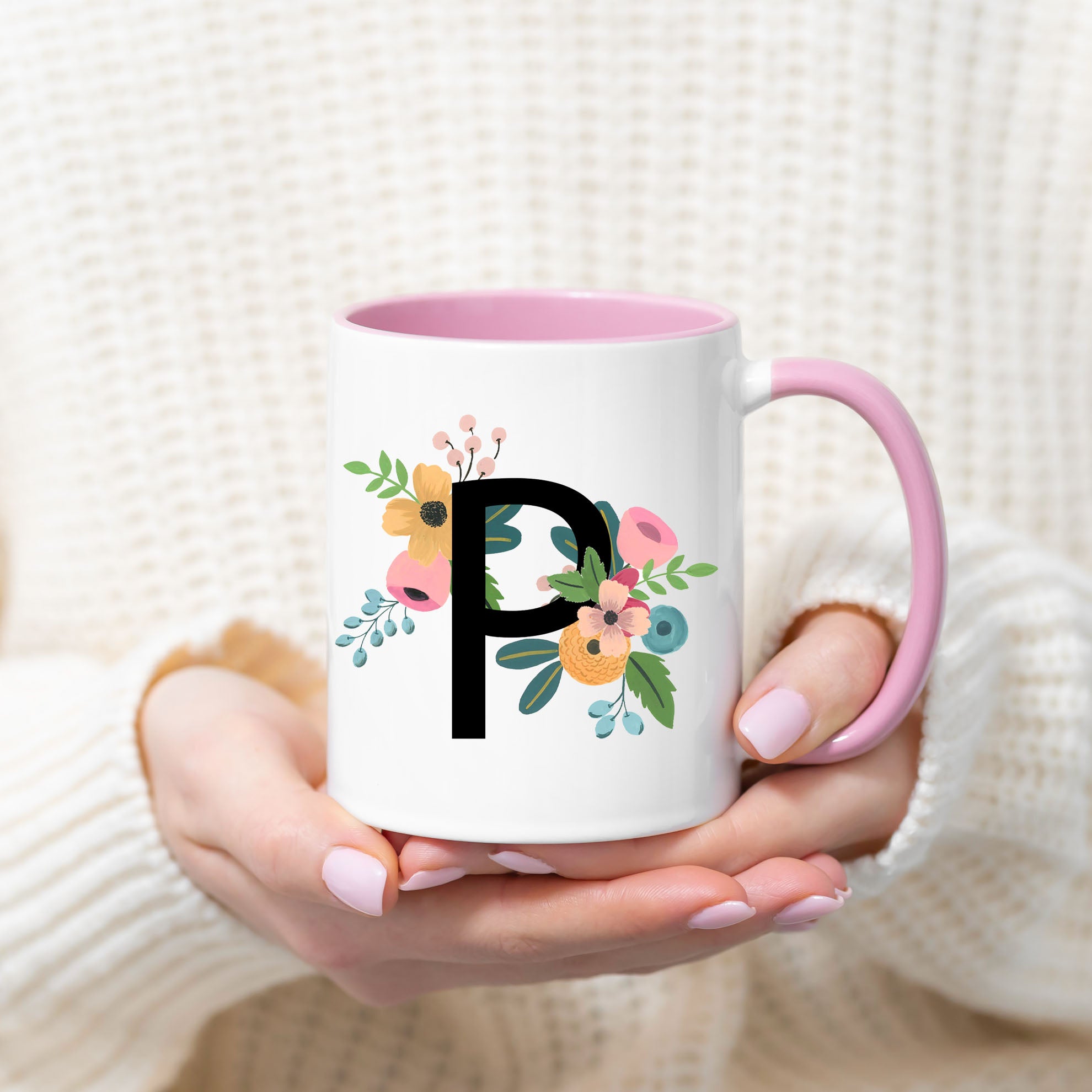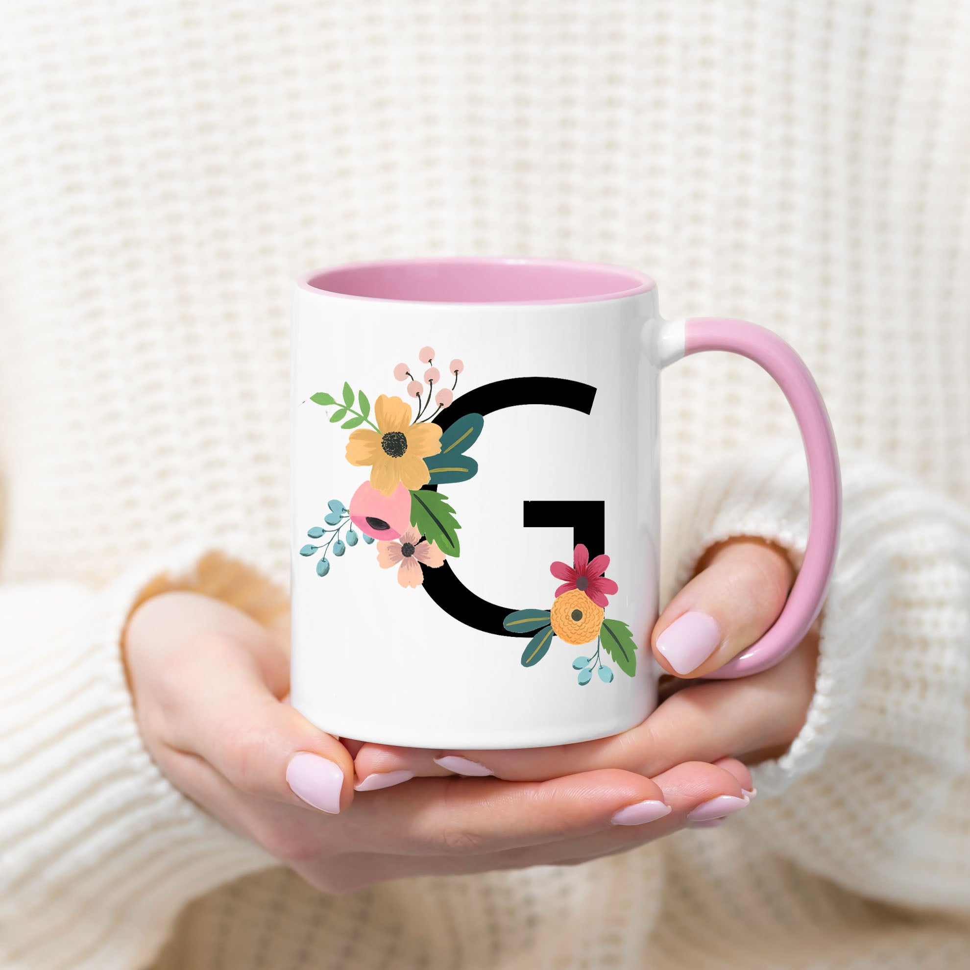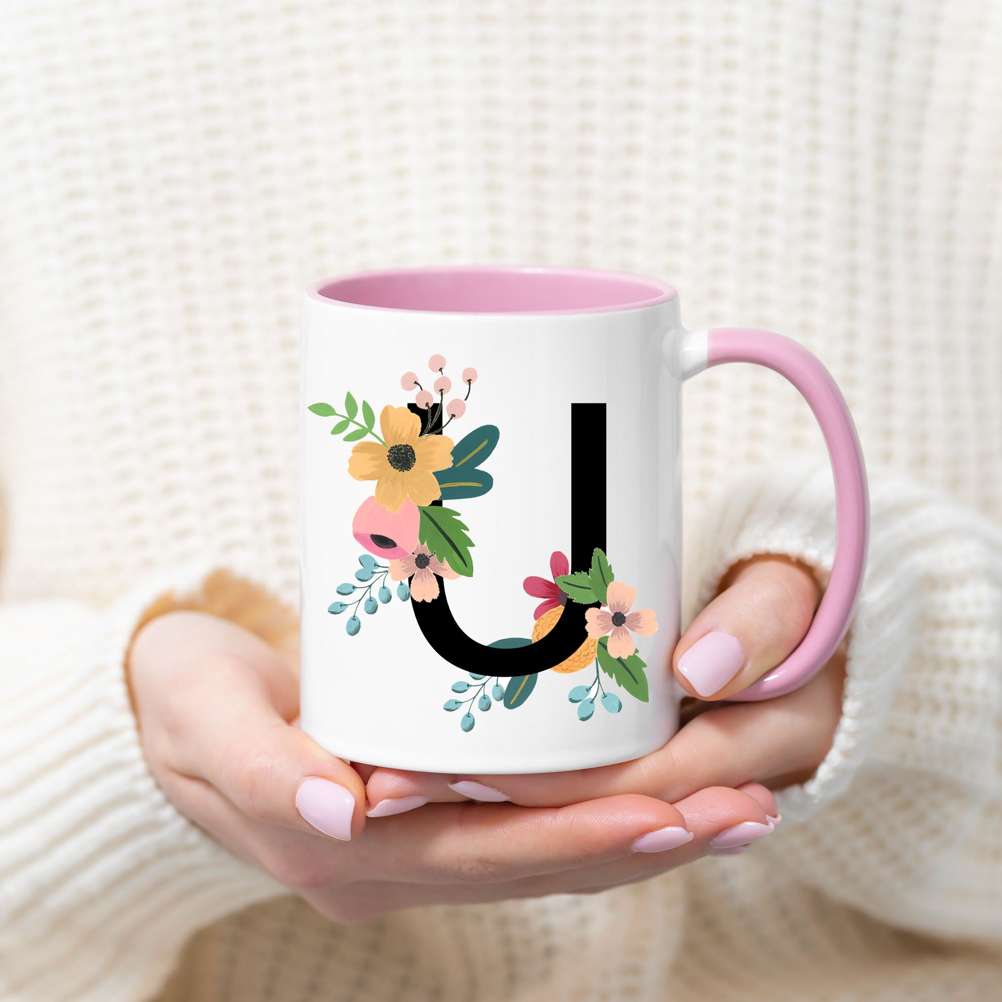 Little joys of life - This monogram mug is overflowing with florals, making it the perfect personalized mug for coffee- or tea-drinker.