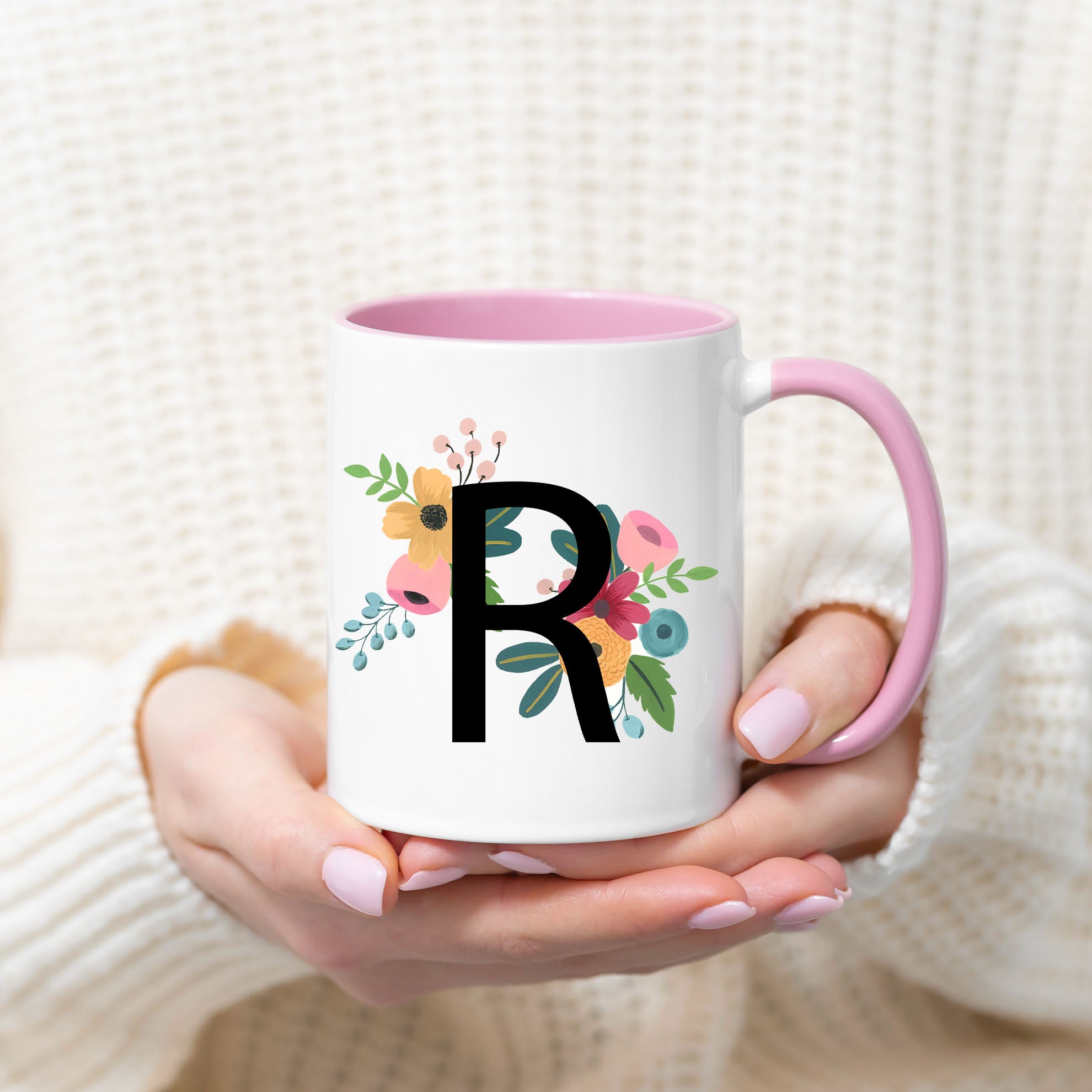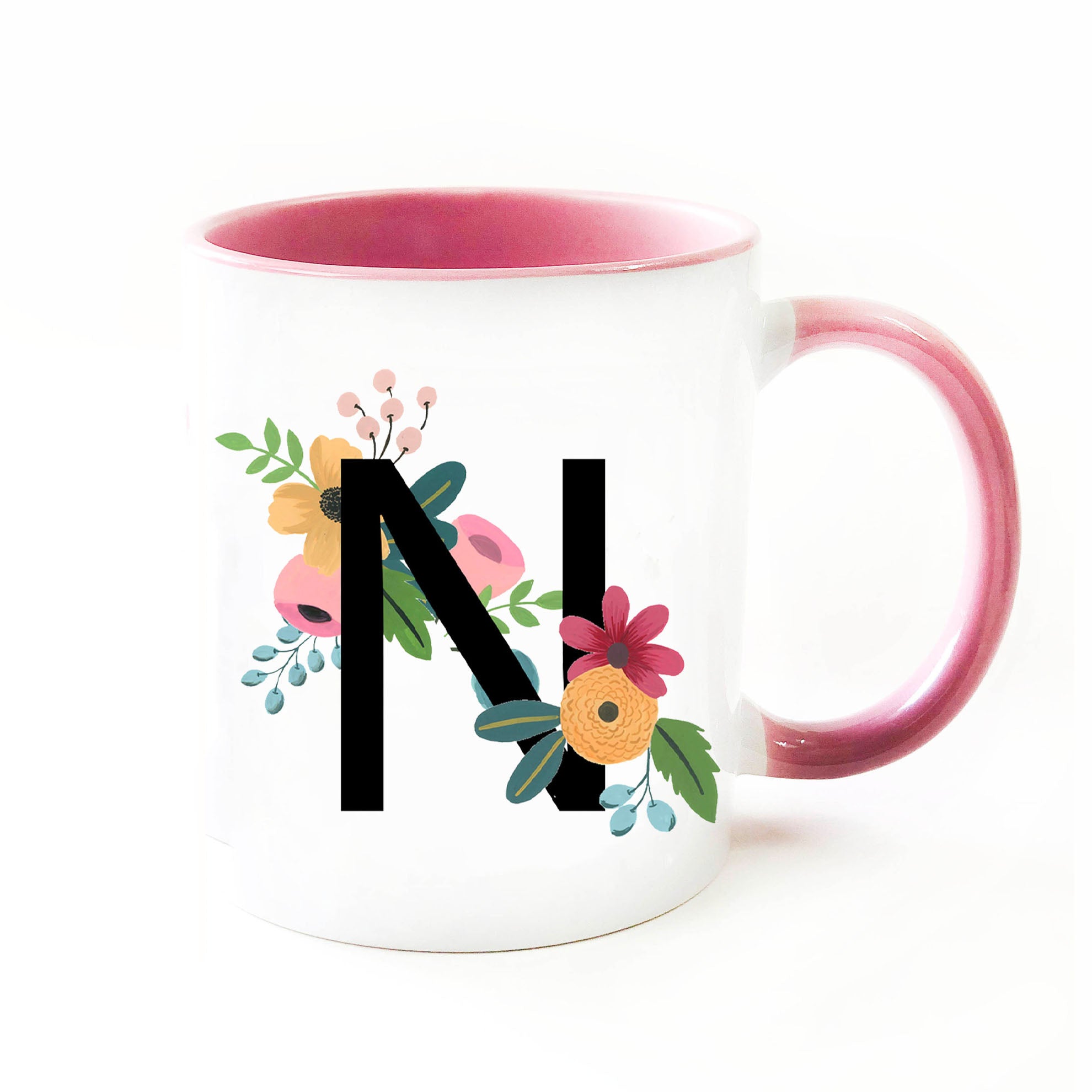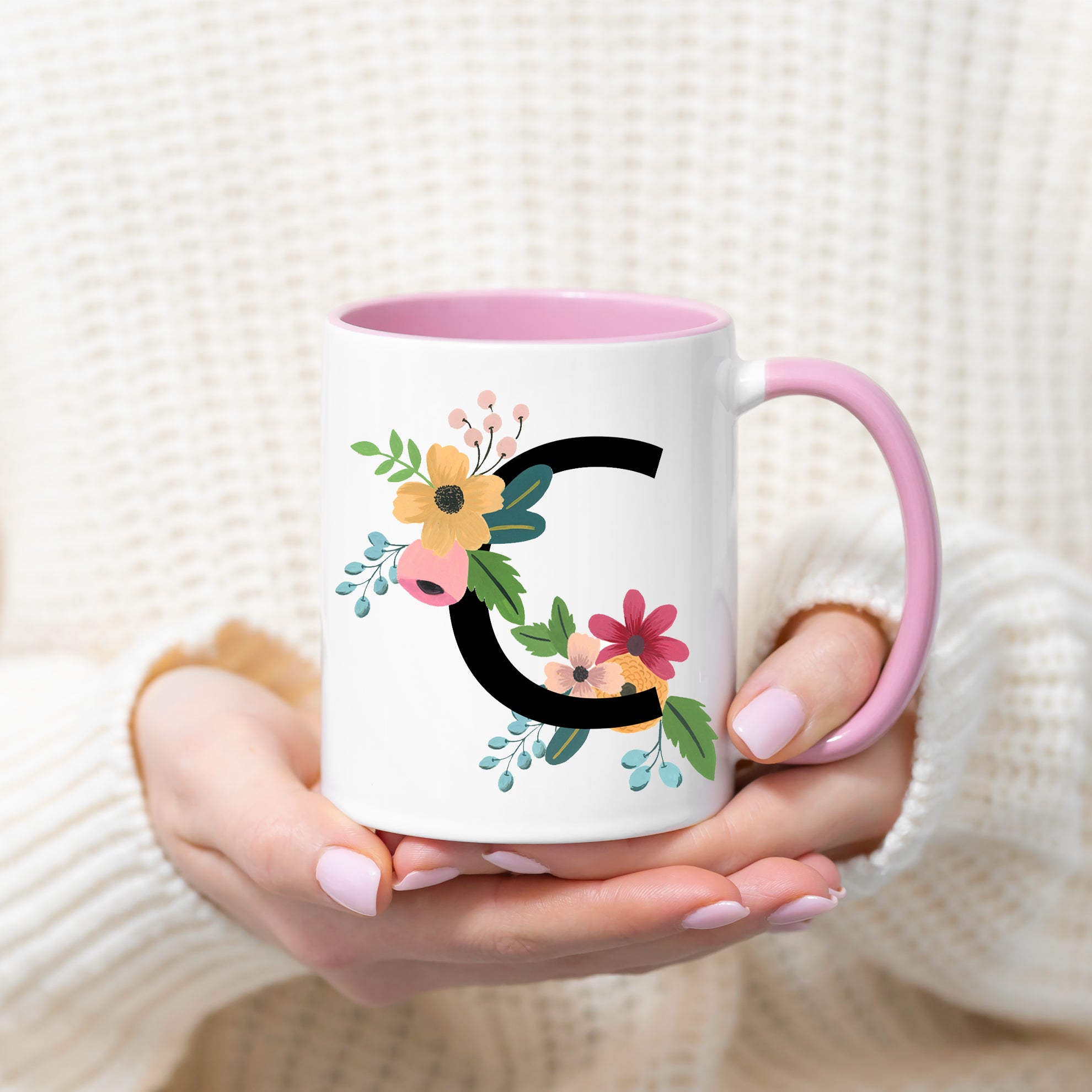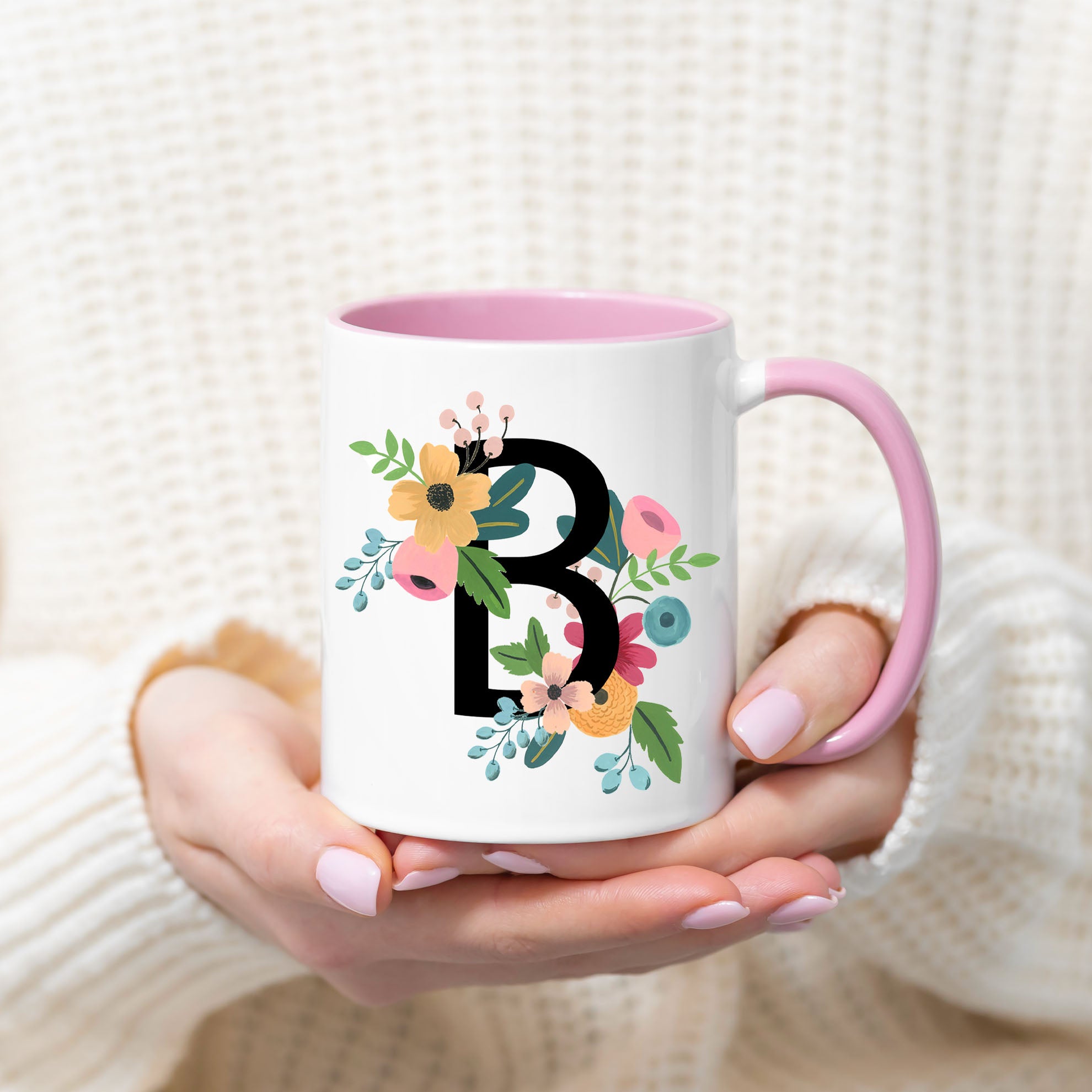 Little joys of life - This monogram mug is overflowing with florals, making it the perfect personalized mug for coffee- or tea-drinker.