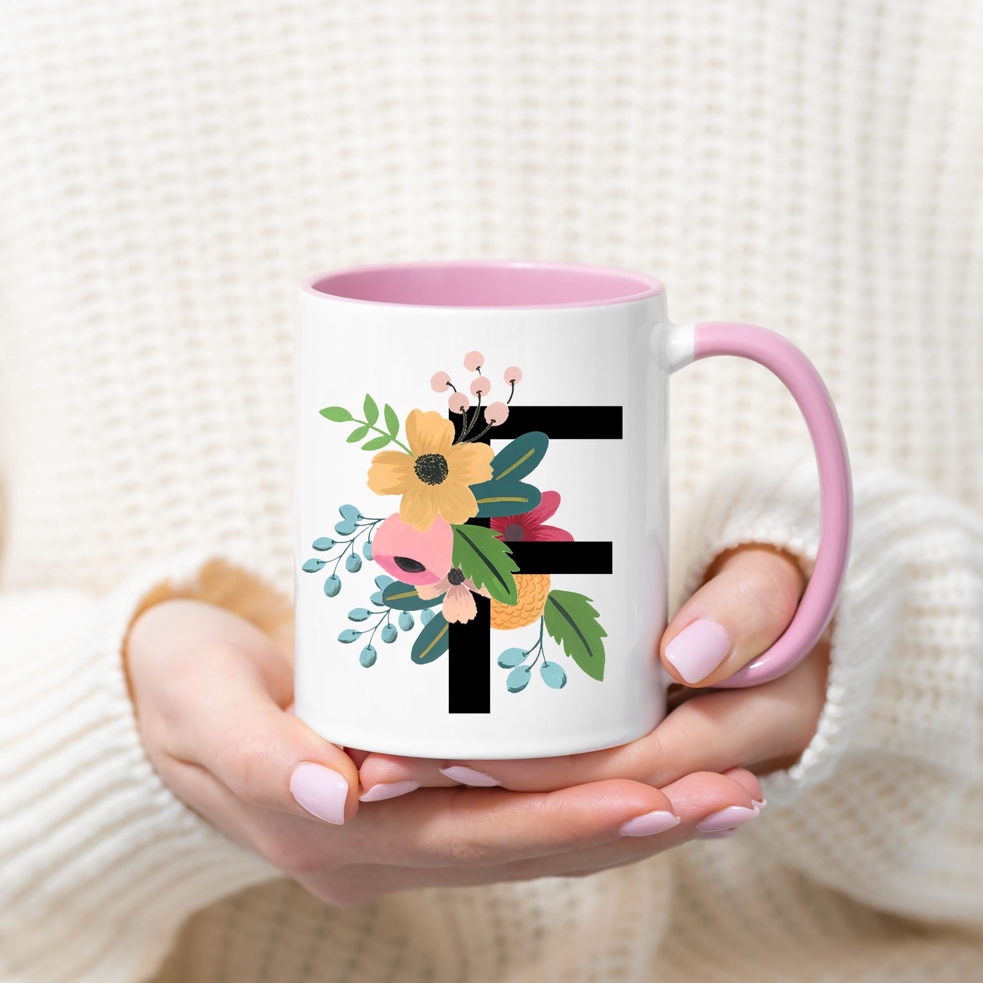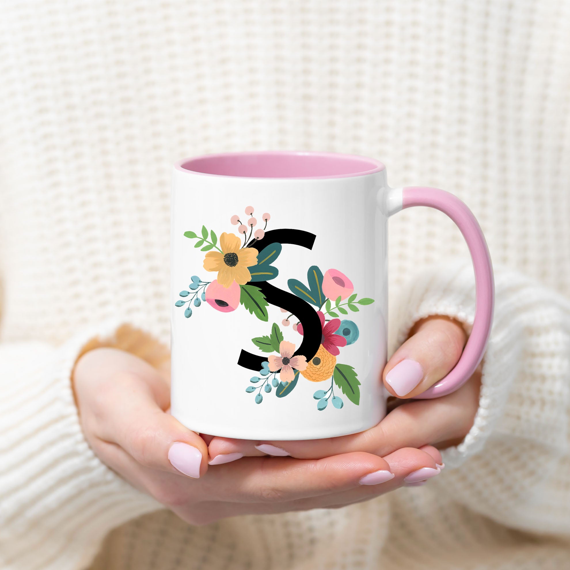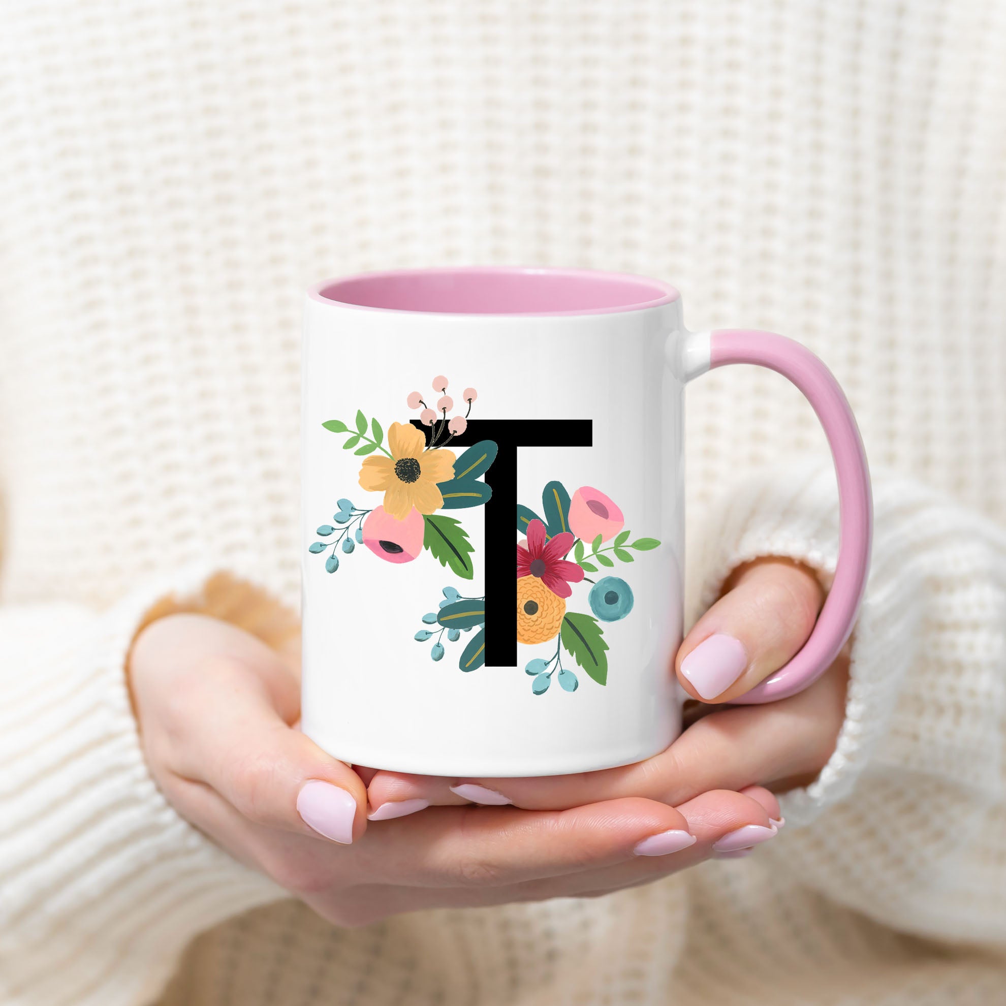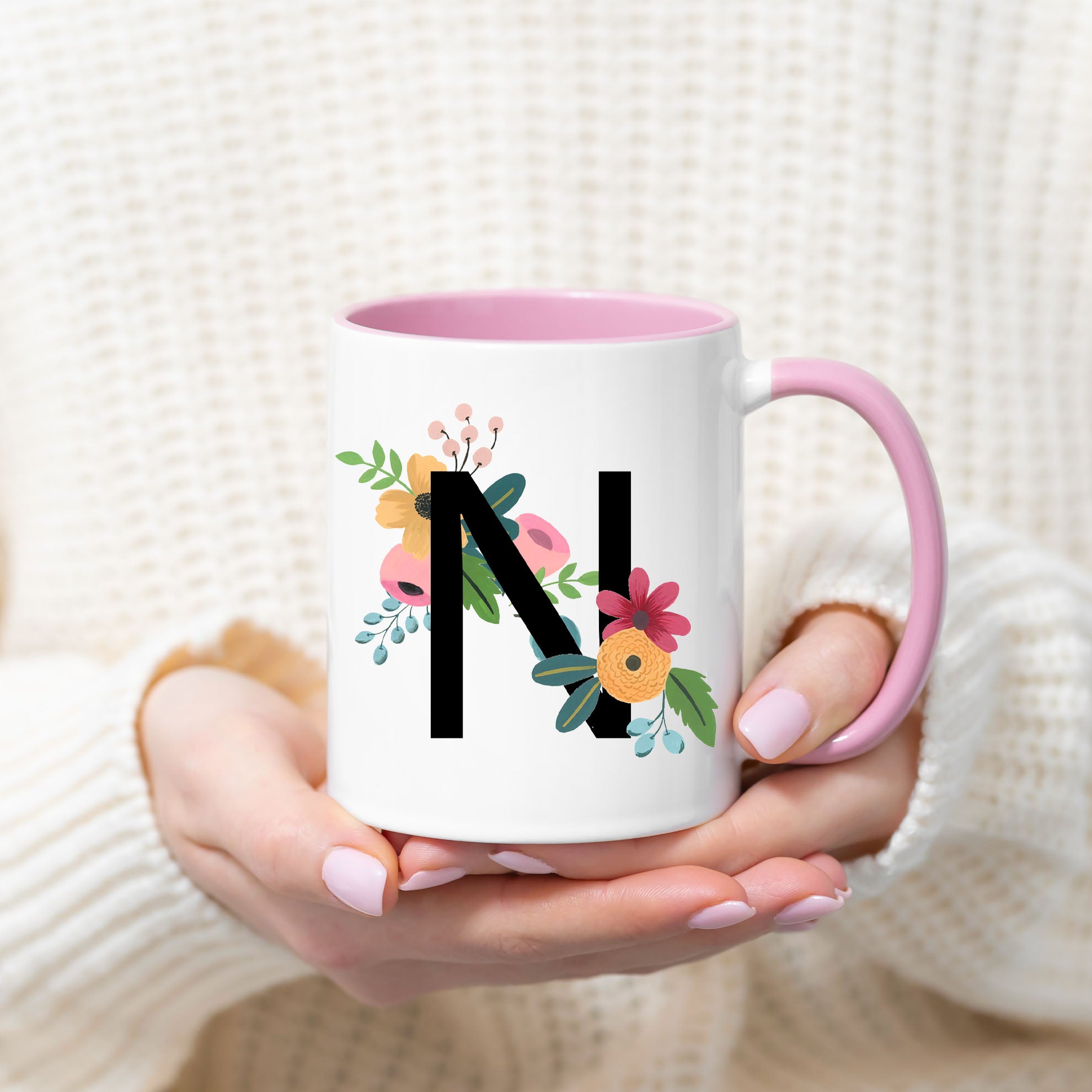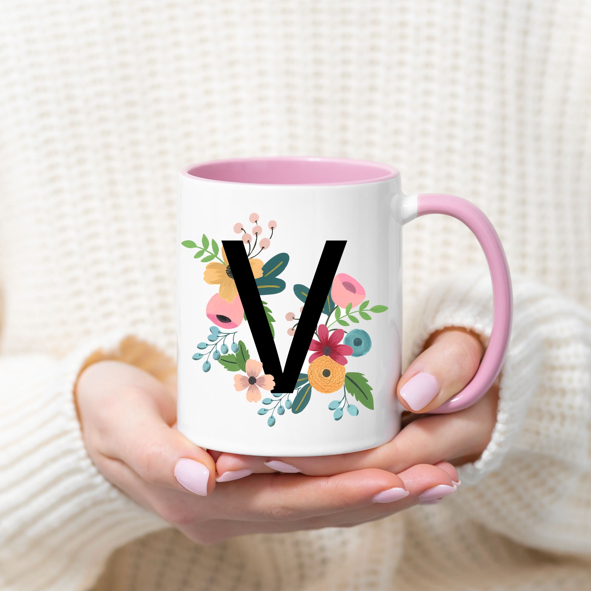 Little joys of life - This monogram mug is overflowing with florals, making it the perfect personalized mug for coffee- or tea-drinker.