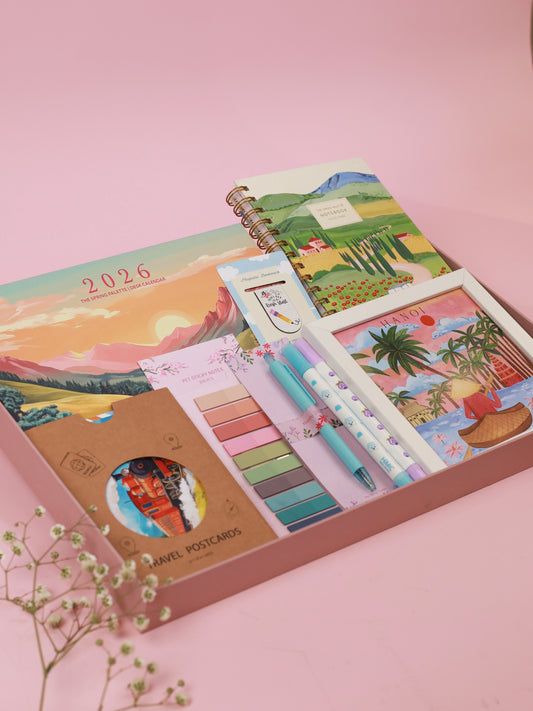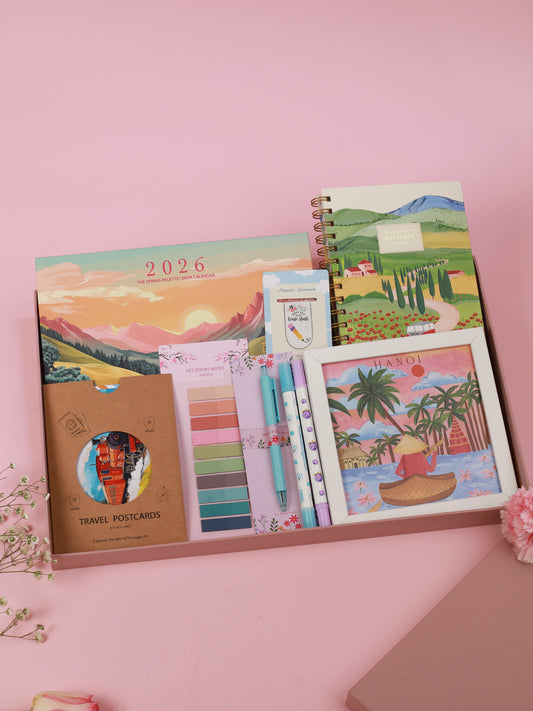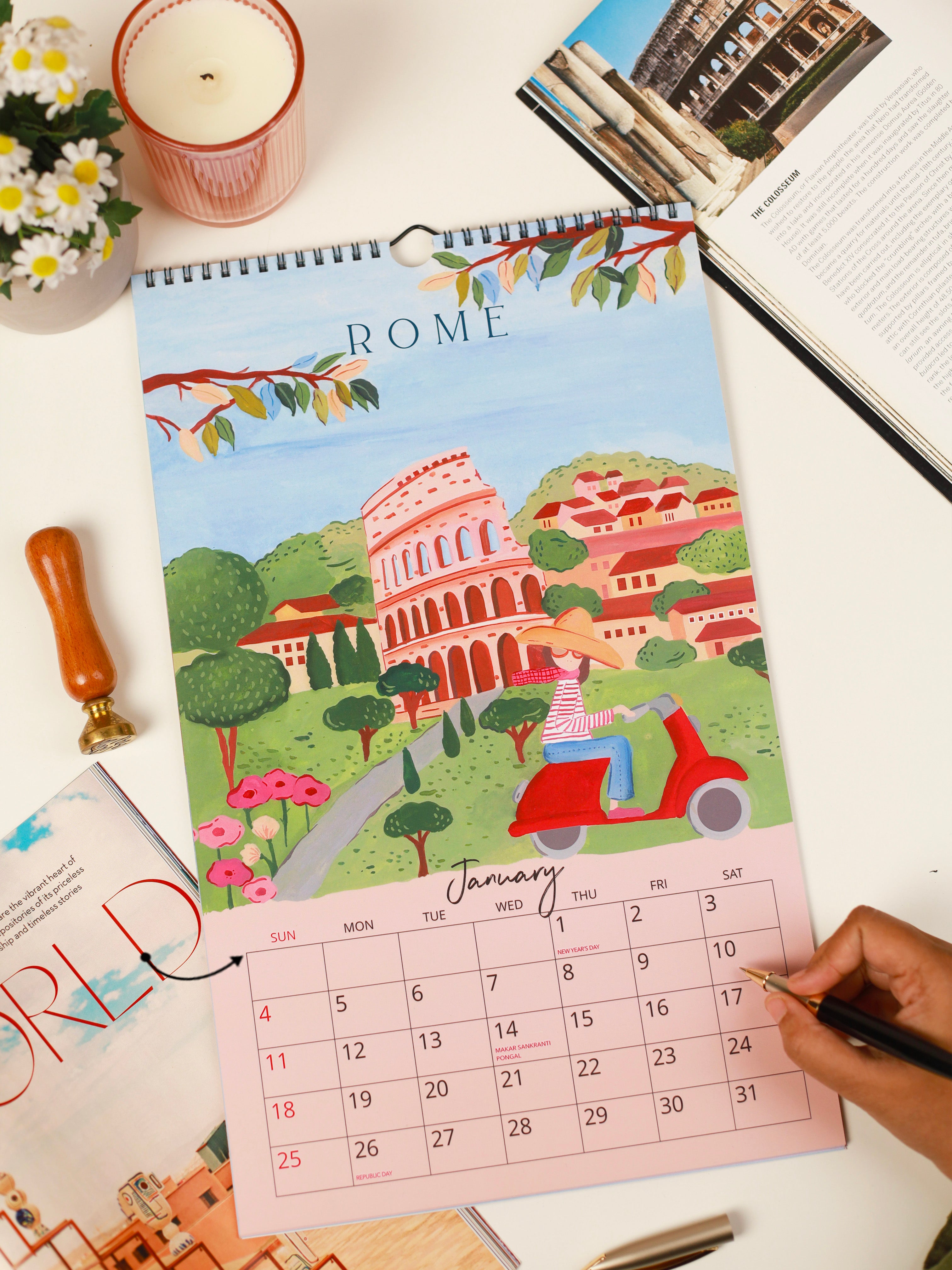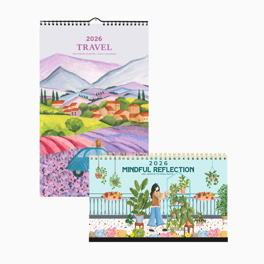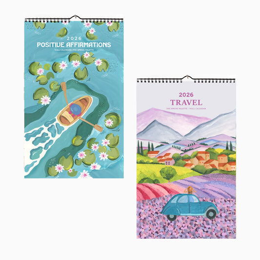 Inspired by the wanderer's soul, this travel calendar showcases original hand painted illustrations that celebrate the beauty of world travel.