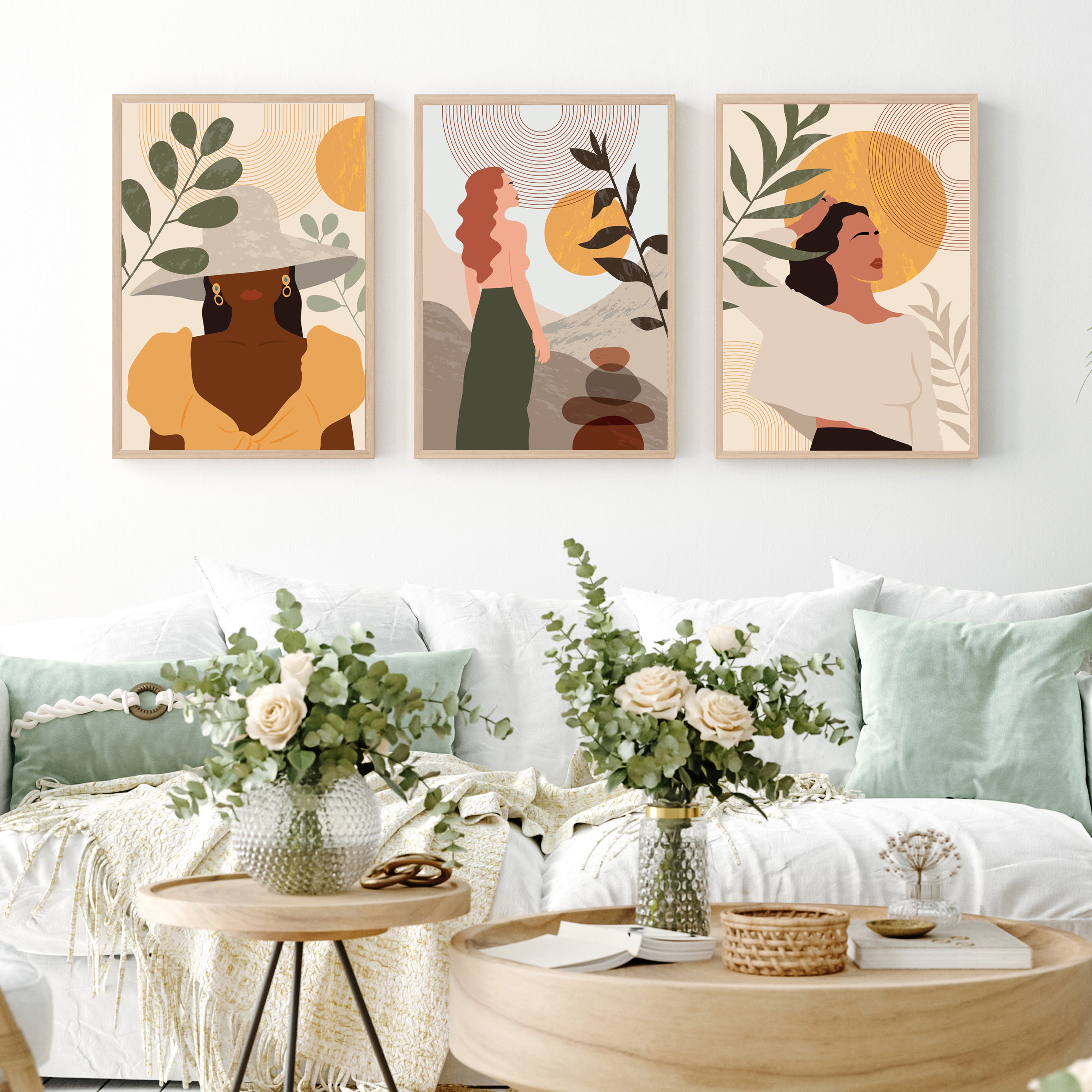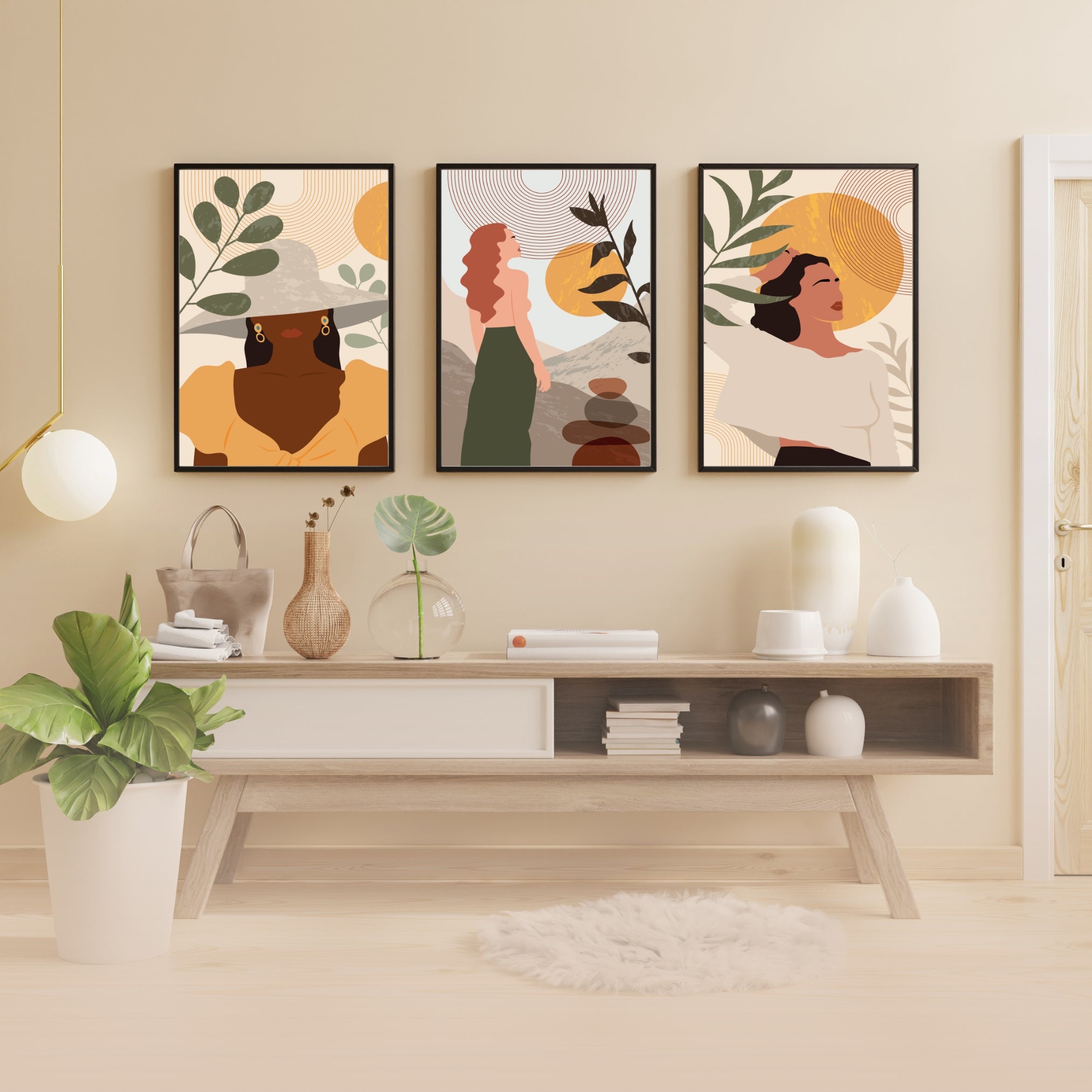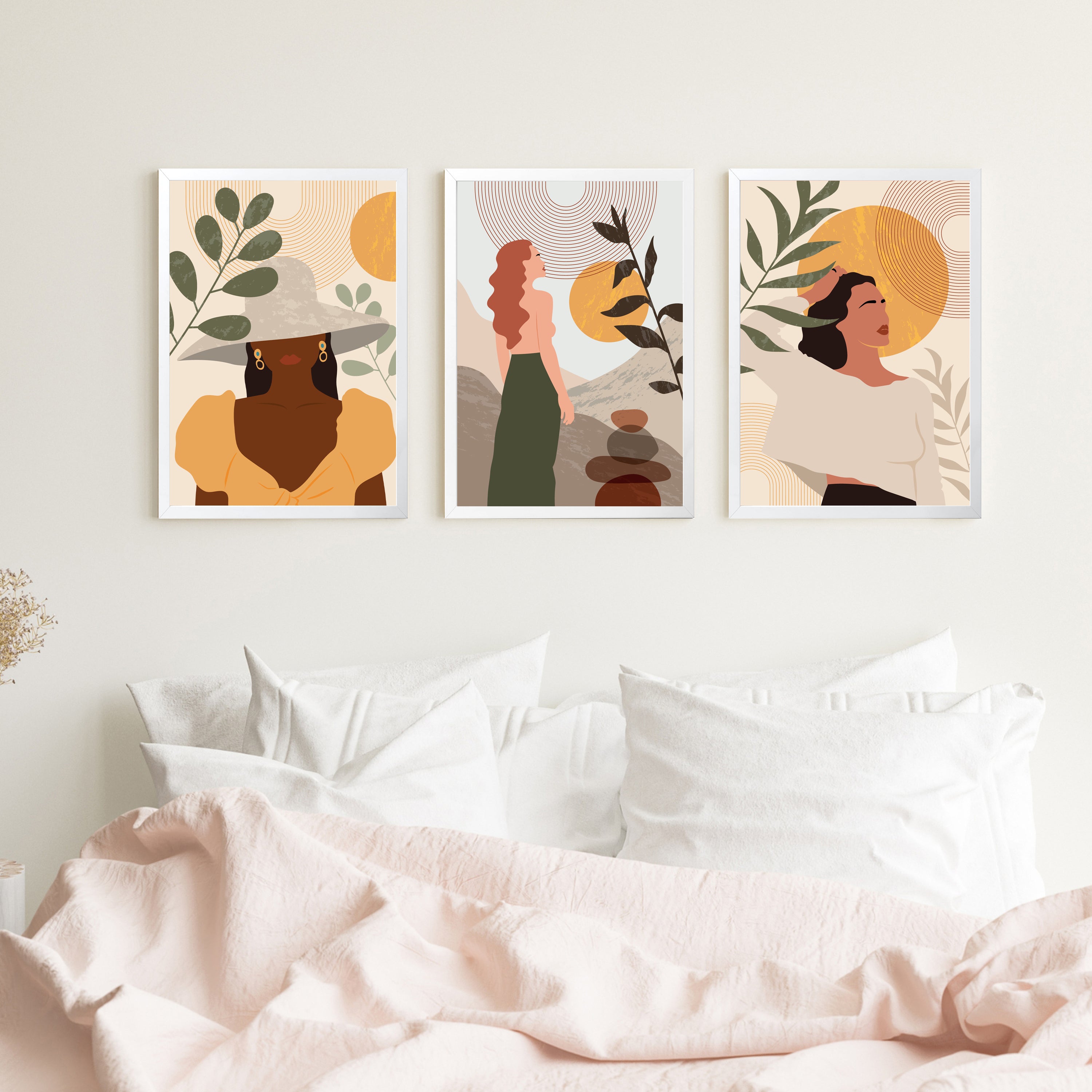 Bold. Radiant. Unapologetically you. This trio of wall art frames—featuring fierce female silhouettes basking in golden sunshine and surrounded by nature’s calm—brings earthy tones and modern flair into perfect harmony. Each piece tells a story of confidence, freedom, and soulful connection to the world around. Whether you're vibing solo or curating a power-packed gallery wall, Sun Sisters adds the right dose of attitude and glow to your space. It's like self-love, but in frame form.