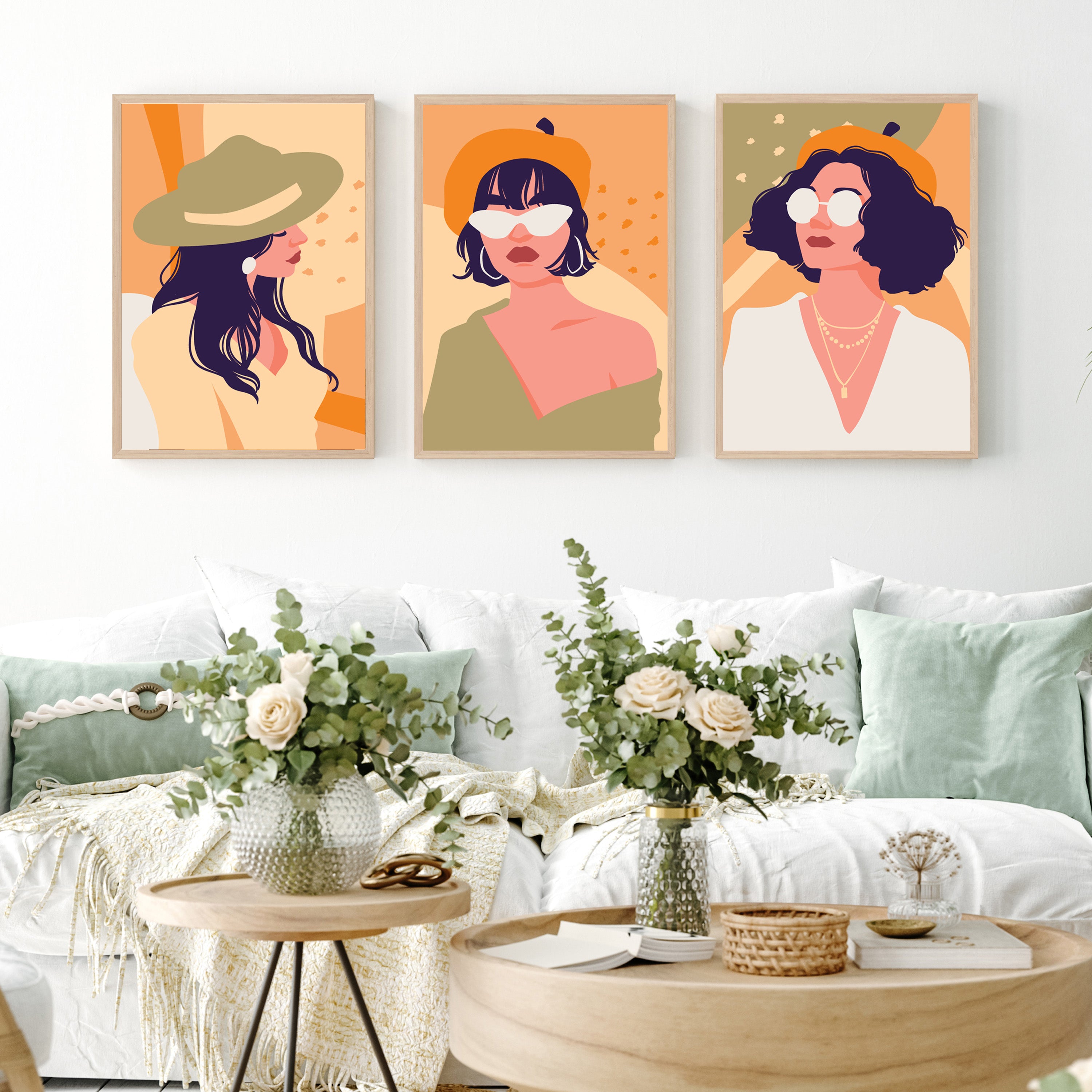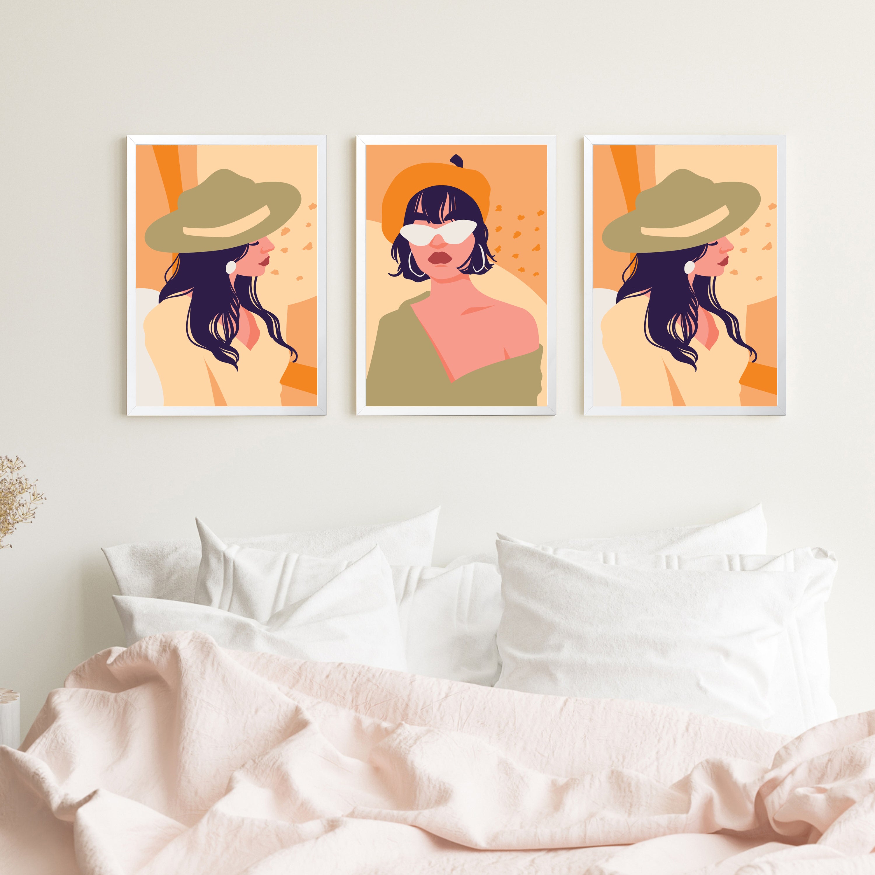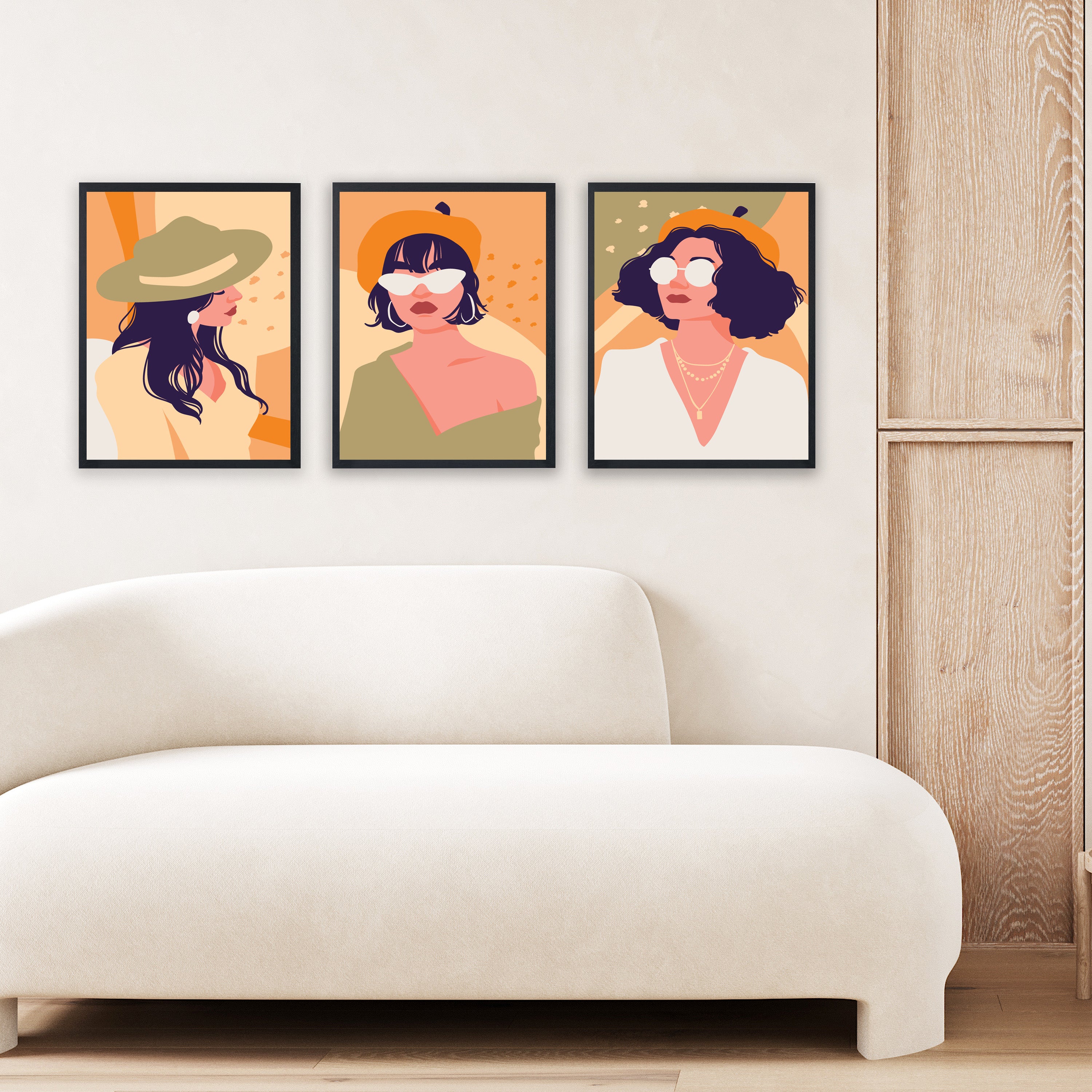 Bold, confident, and effortlessly cool — this set of three wall art frames brings modern fashion illustration to life in a striking palette of warm, contemporary tones. Each piece celebrates feminine individuality and self-expression through sharp silhouettes, chic accessories, and unapologetic style. Whether it’s the subtle tilt of a hat or the confidence in a stance, these artworks channel the essence of modern muses who own their space.