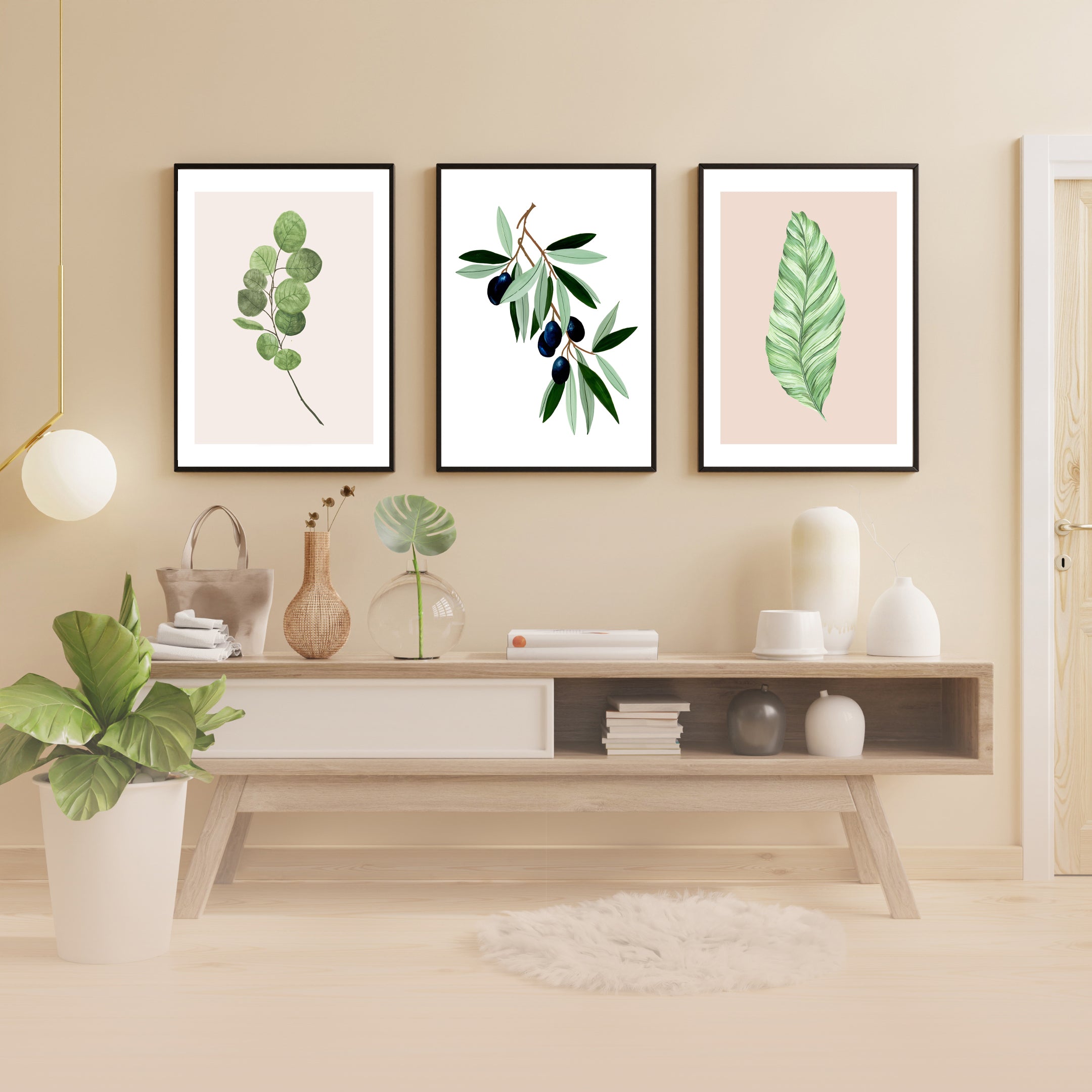 • Modern Botanica Wall Art Set of 3 - (Eucalyptus, Olive, Banana Leaf)