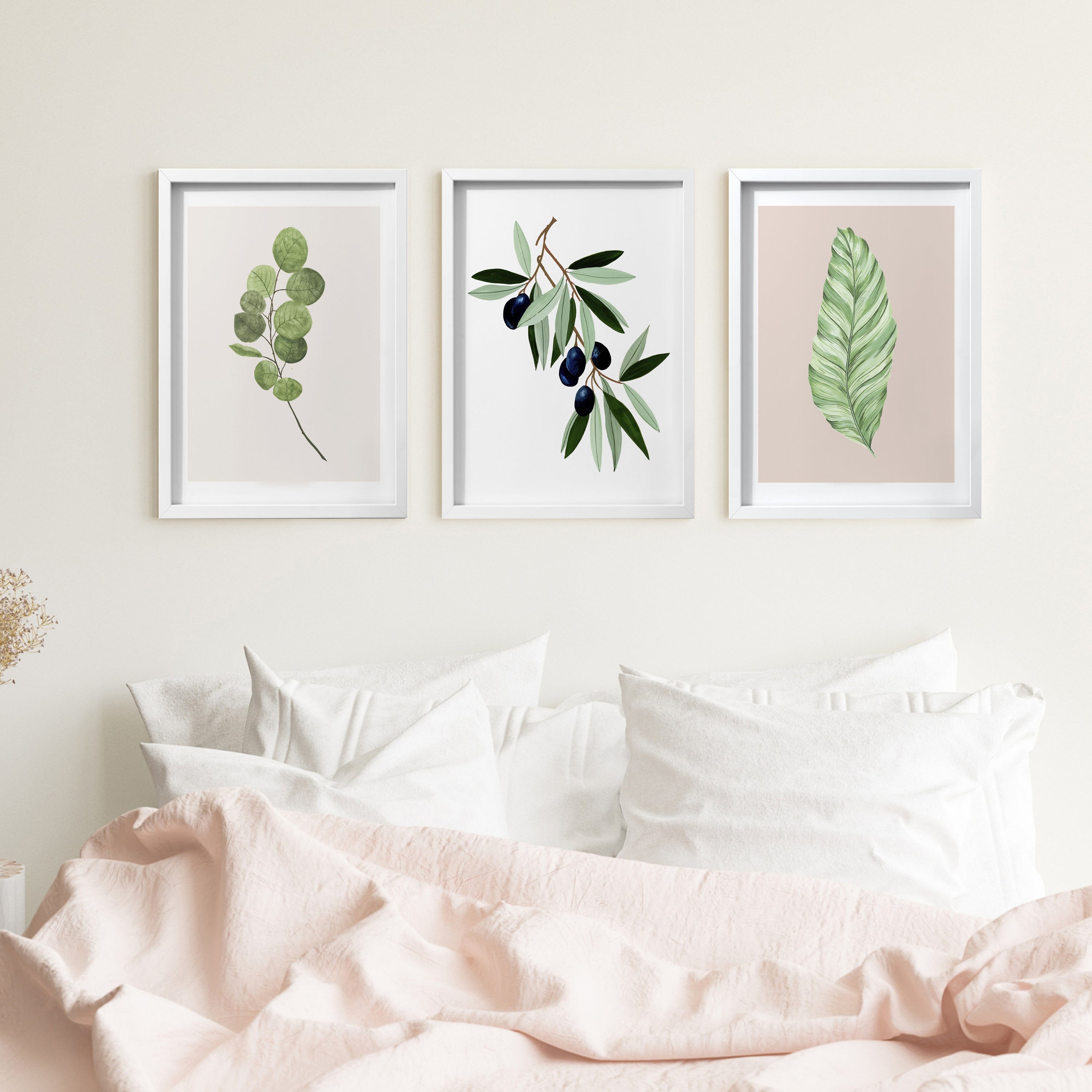 Modern Botanica Wall Art Set of 3 - (Eucalyptus, Olive, Banana Leaf)