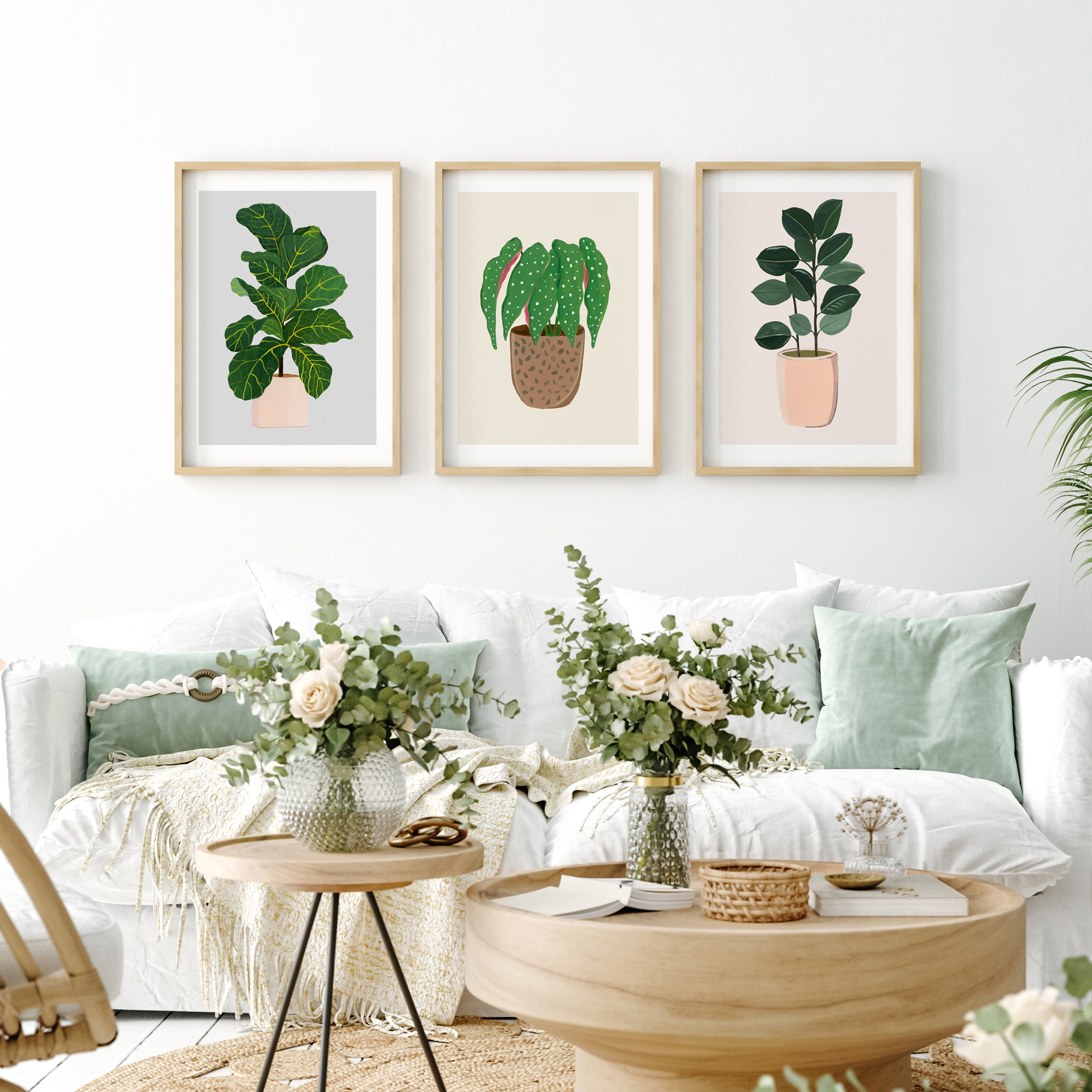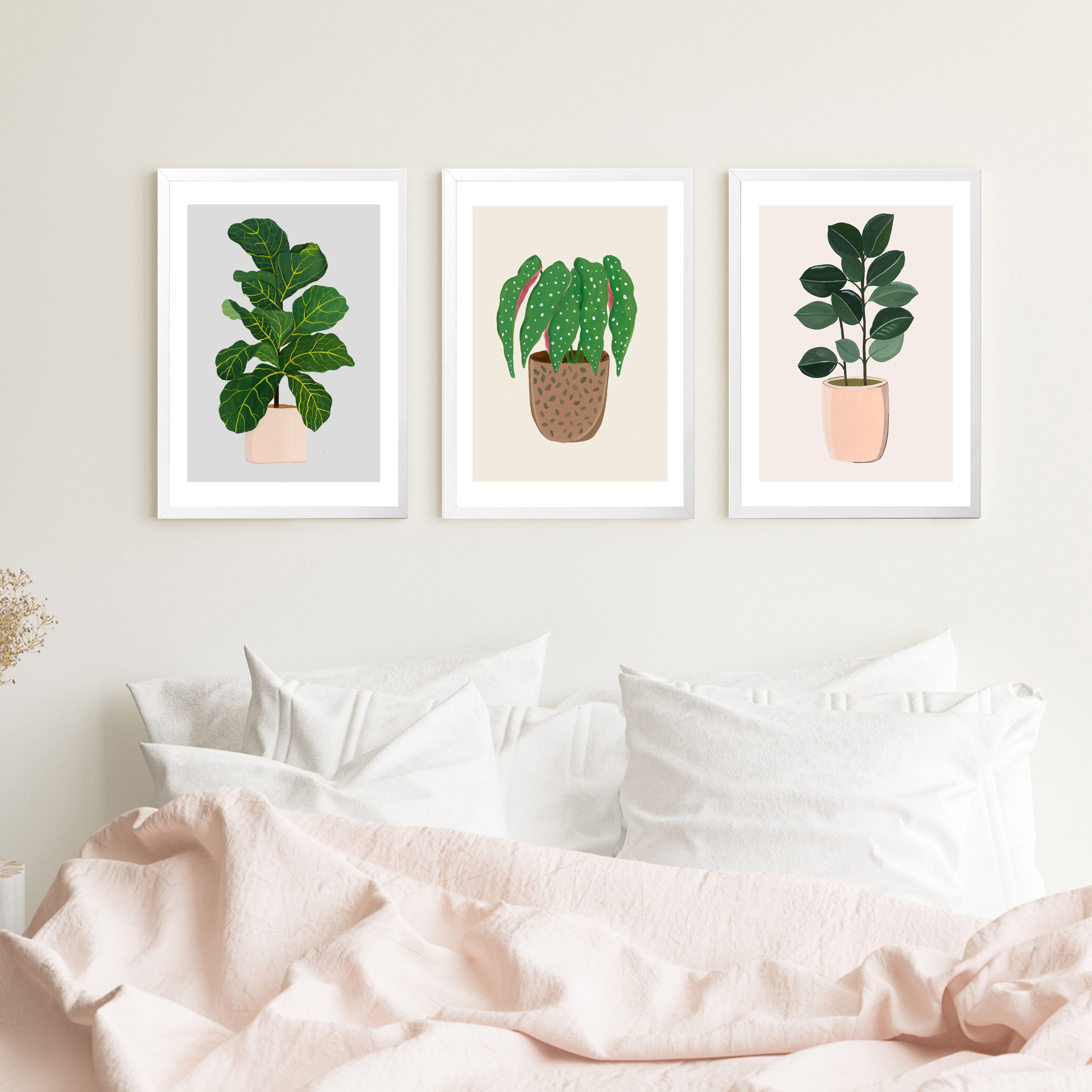 • House Plants Framed Wall Art (Set of 3 - Fiddle-fig, Rubber, Snake)