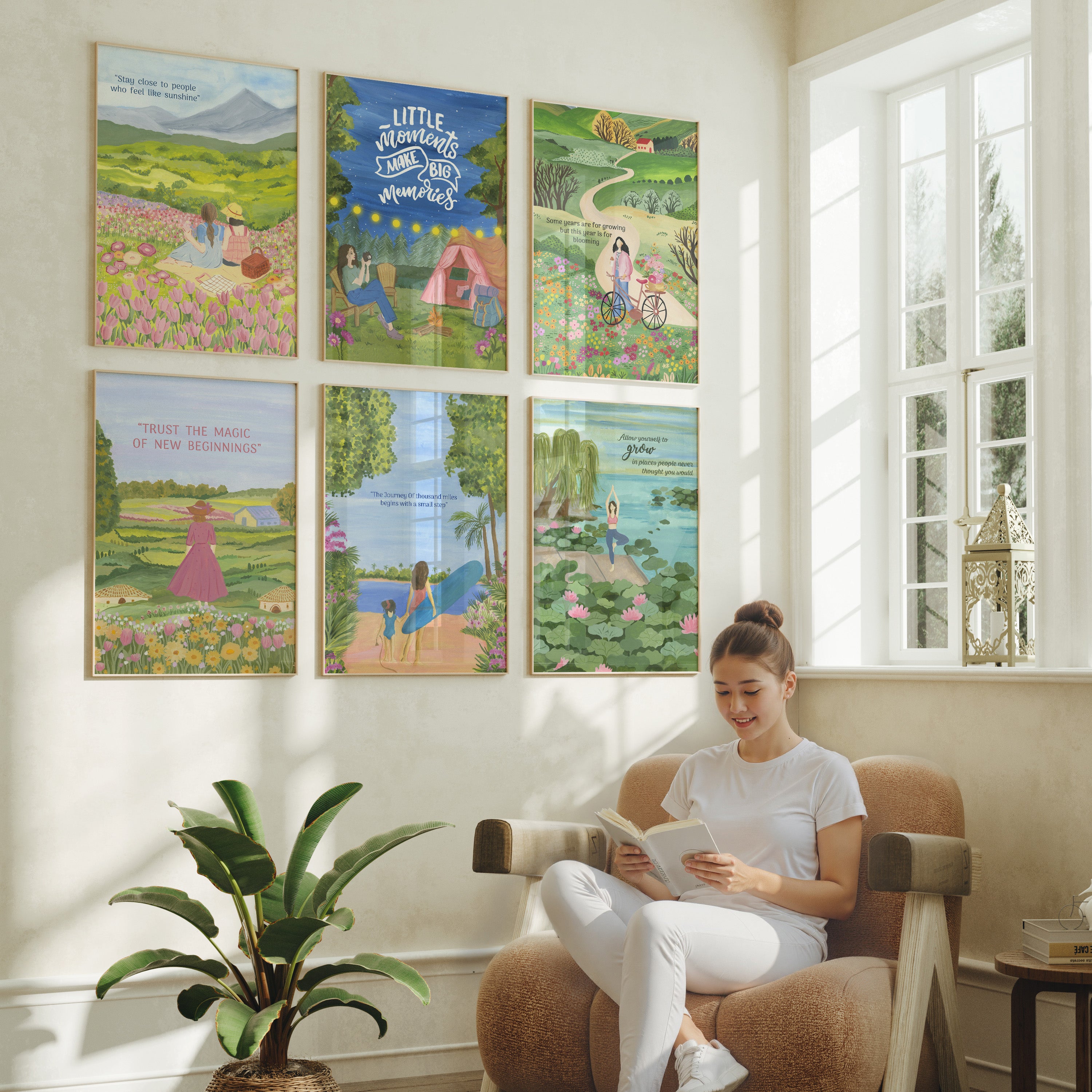 Perfect for a reading nook, kitchen wall, or a creative corner, this collection radiates positivity and gentle inspiration. It’s a daily reminder to enjoy where you are, keep growing, and always cherish the simple things.