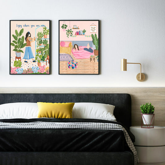 We offer a wide collection of hand-painted wall arts - botanicals, travel, mindfulness and wellbeing, abstracts!