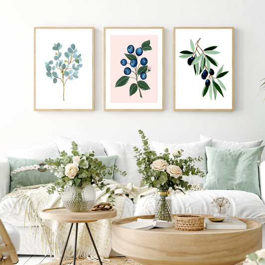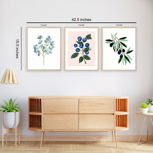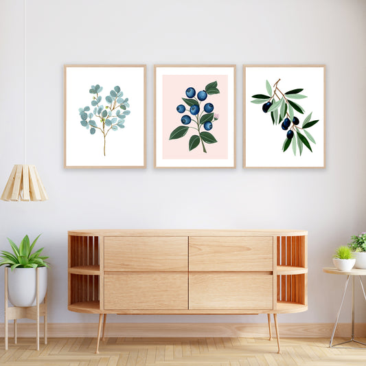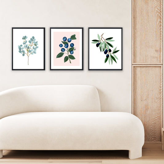Modern Botanicals Framed Wall Art (Set of 3 - Eucalyptus, Blueberry, Olive)