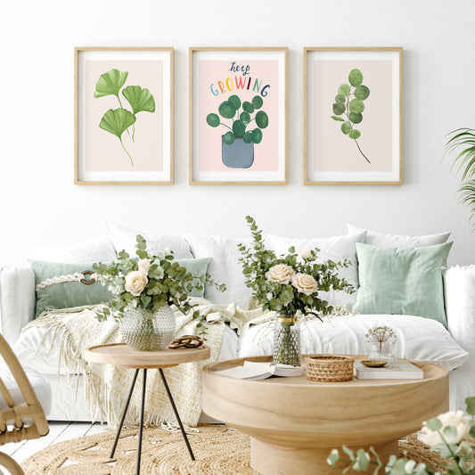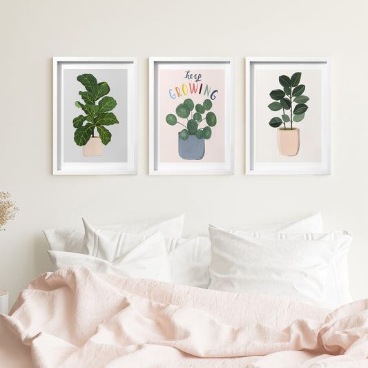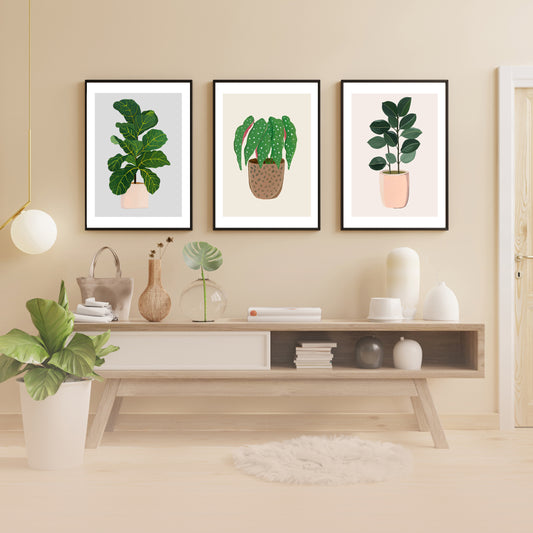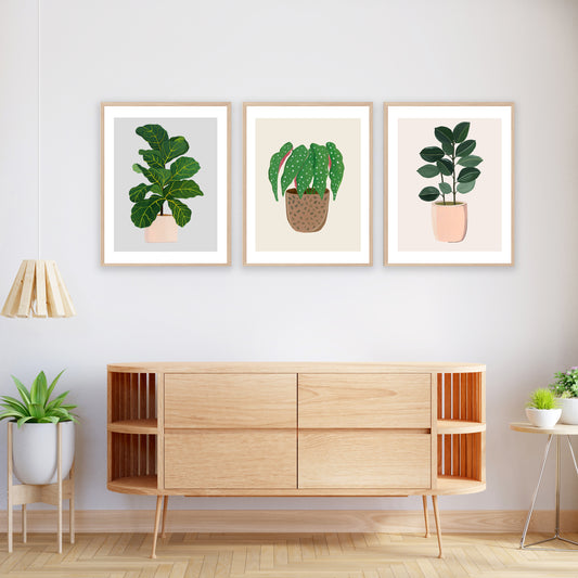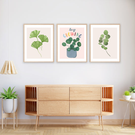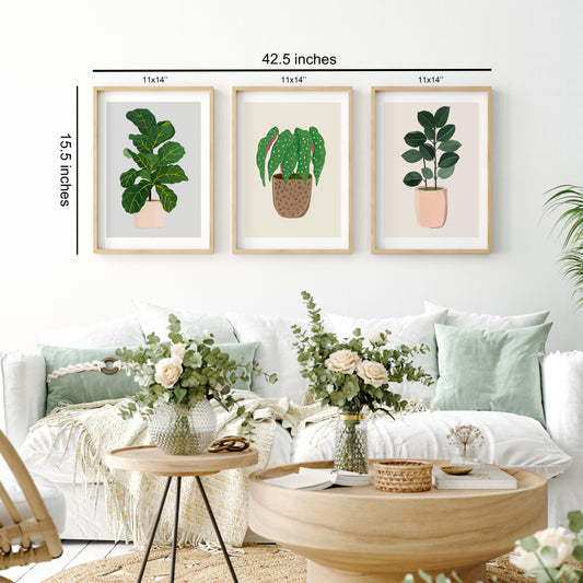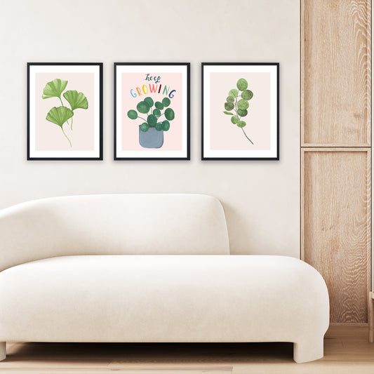 Nature's Pause Framed Wall Art Set of 3 - Fiddle-fig, Plant Lady, Just Breathe