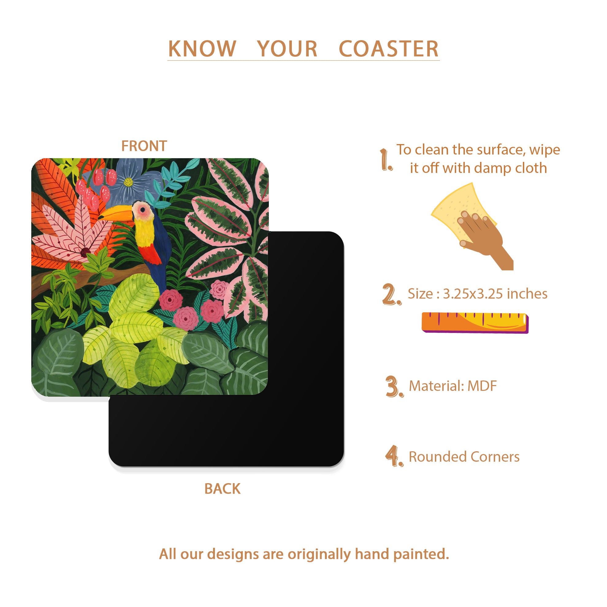 Say hello to jungle themed coasters. Time to say bye to old boring themed coasters on your table. Make your tea/coffee time more insta worthy with our cute into the wild coasters.