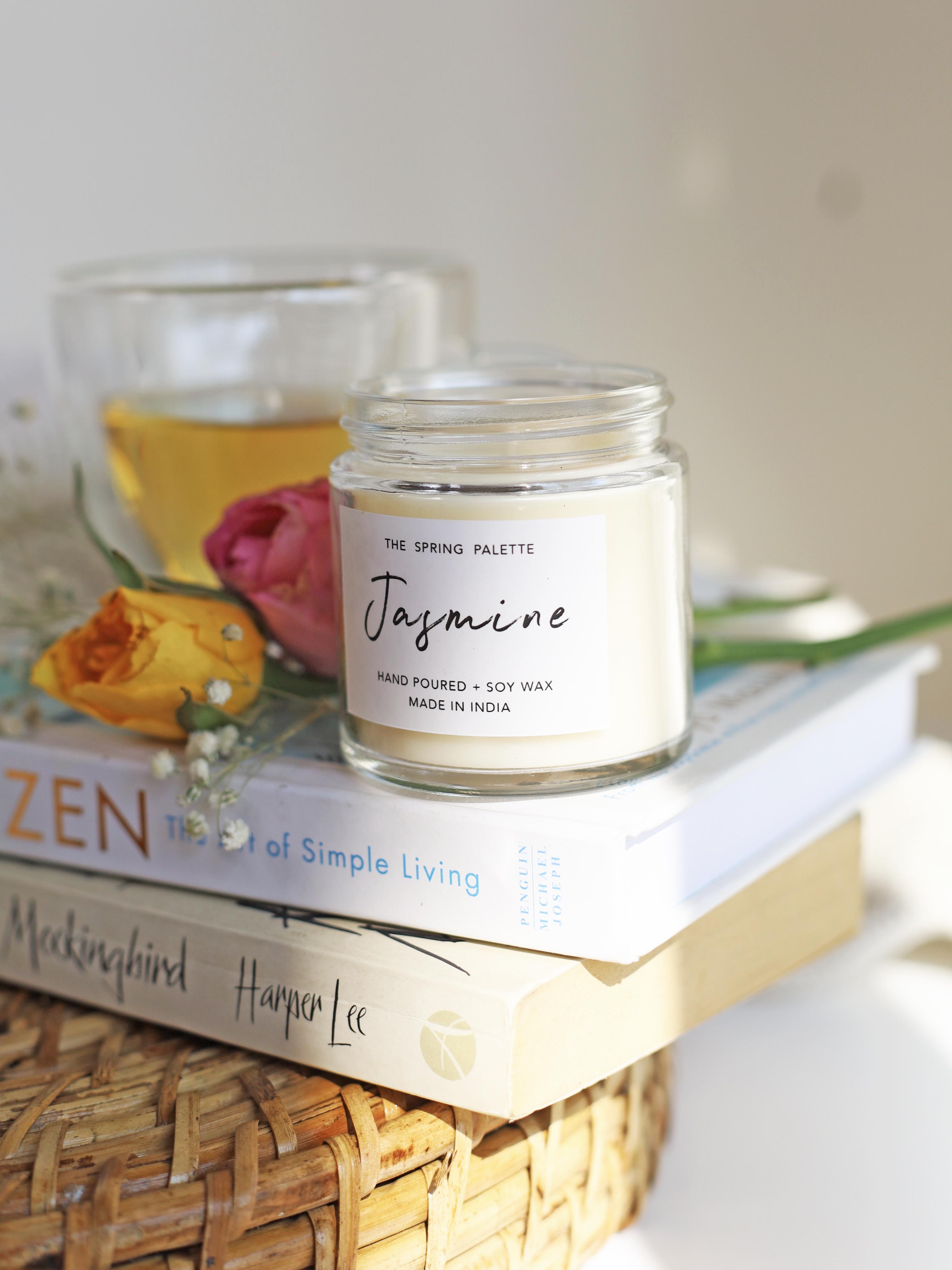 - Hand-poured soy candle in an 4 oz. glass jar with golden tin cap
