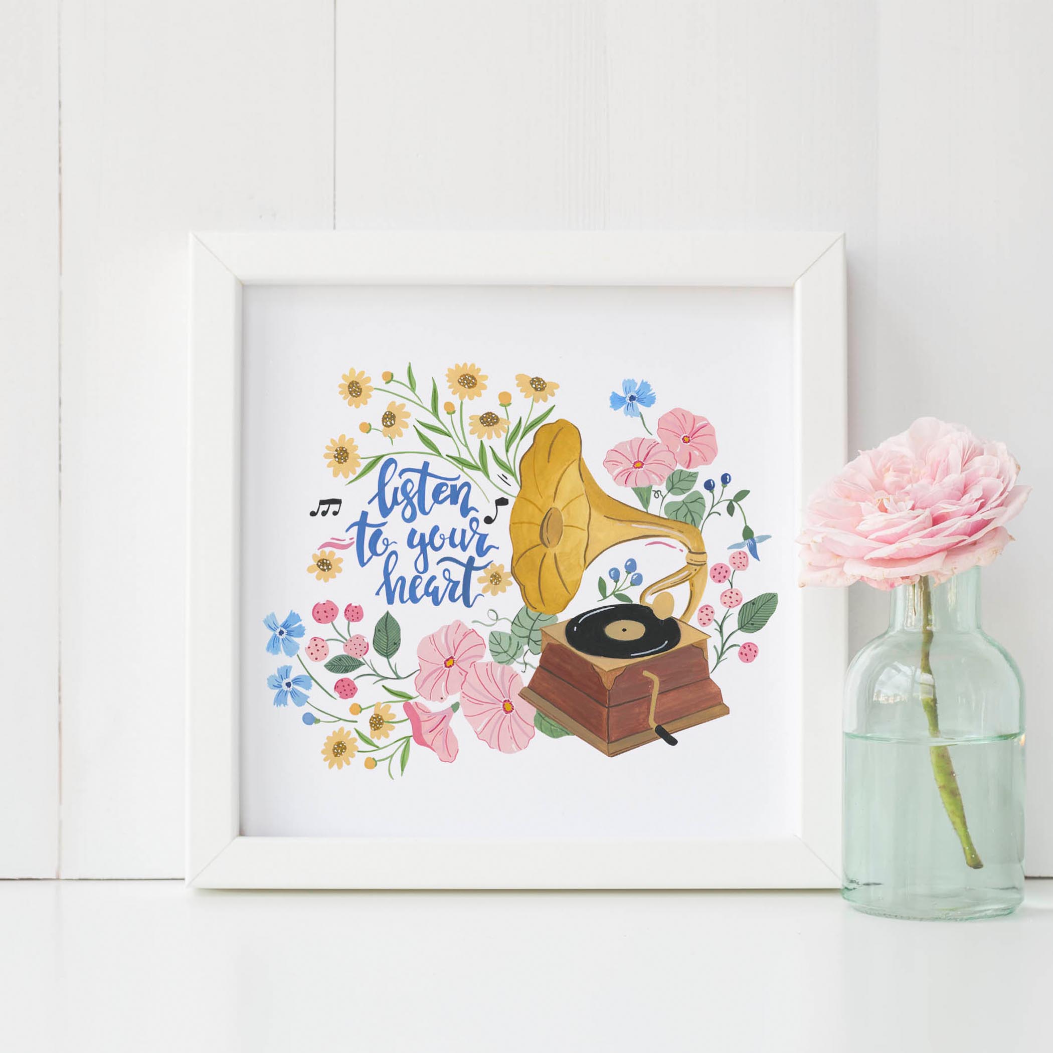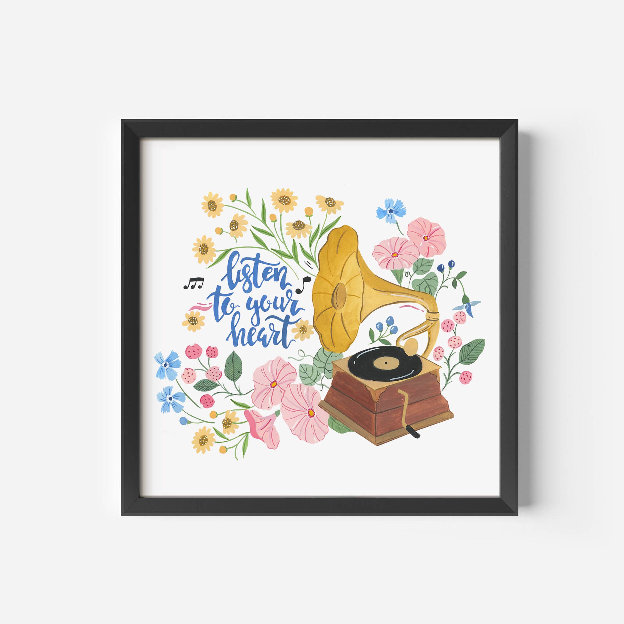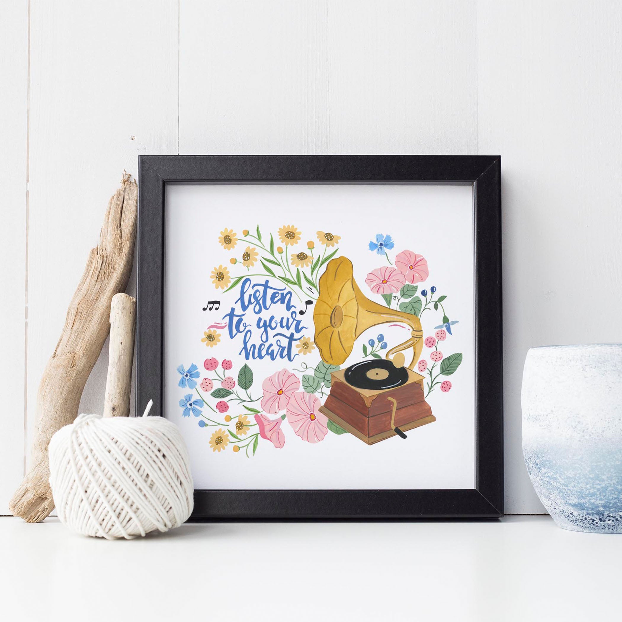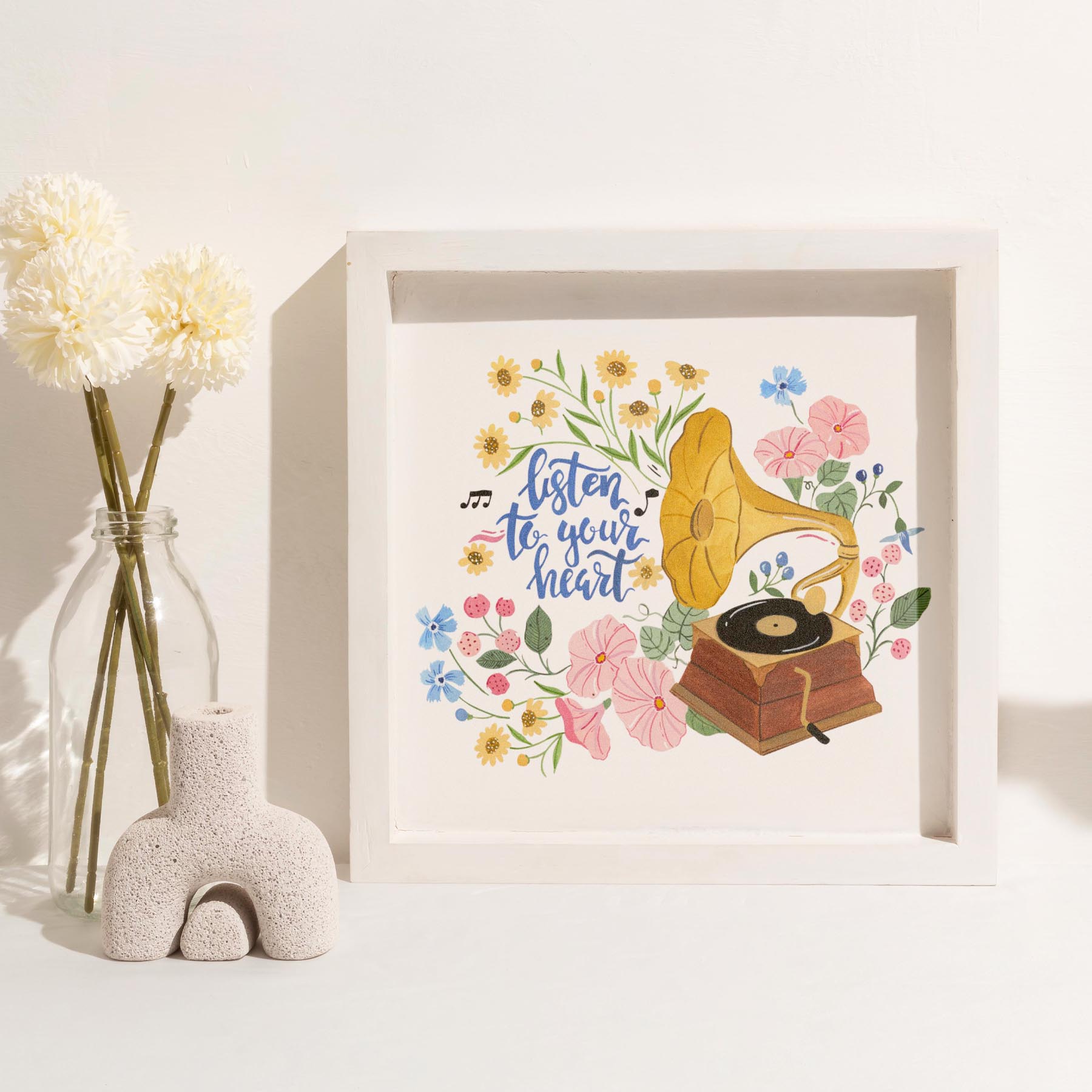 Listen To Your Heart Mini Wall Art Frame (Table Top Mount)