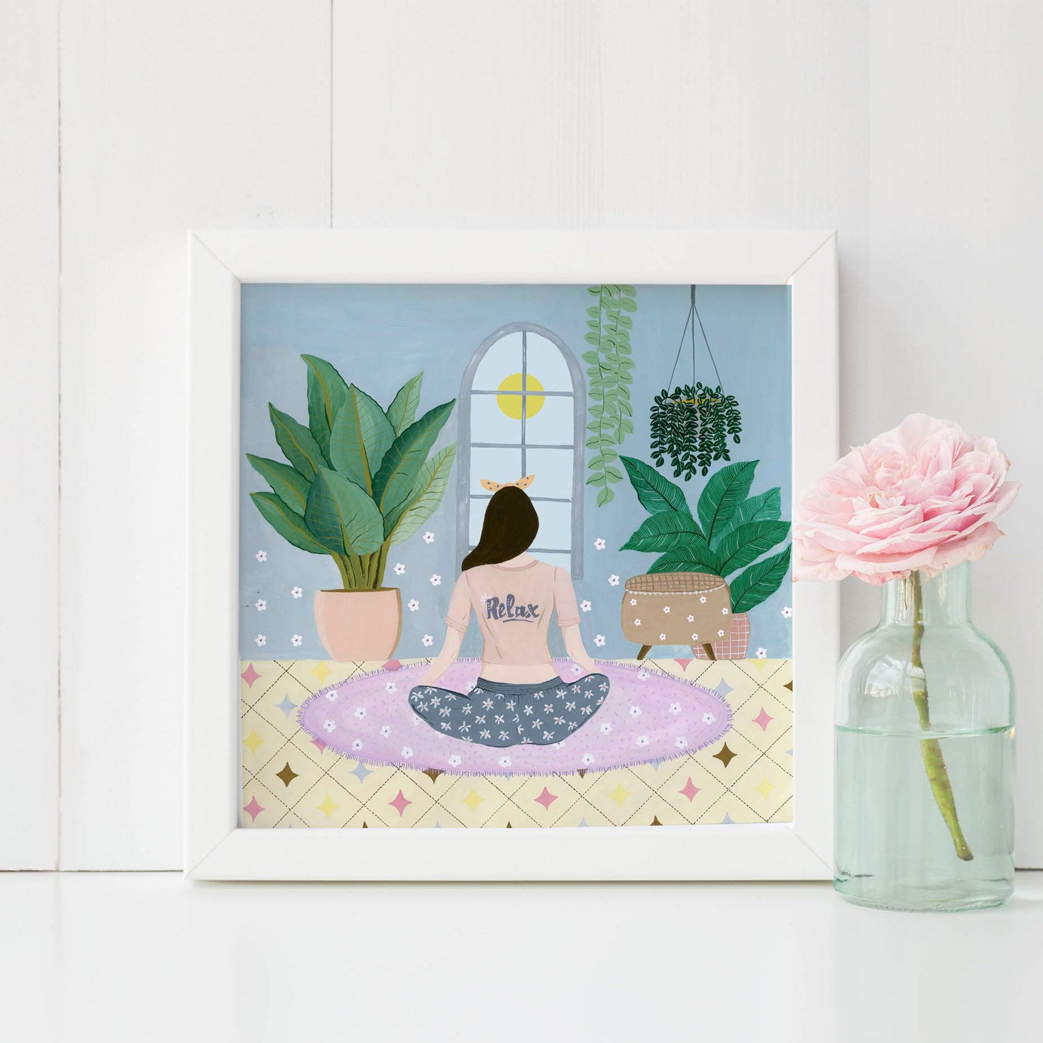 A self care themed wall art. High quality art prints on fine art paper. This is an illustrated art print created from an original gouache painting.