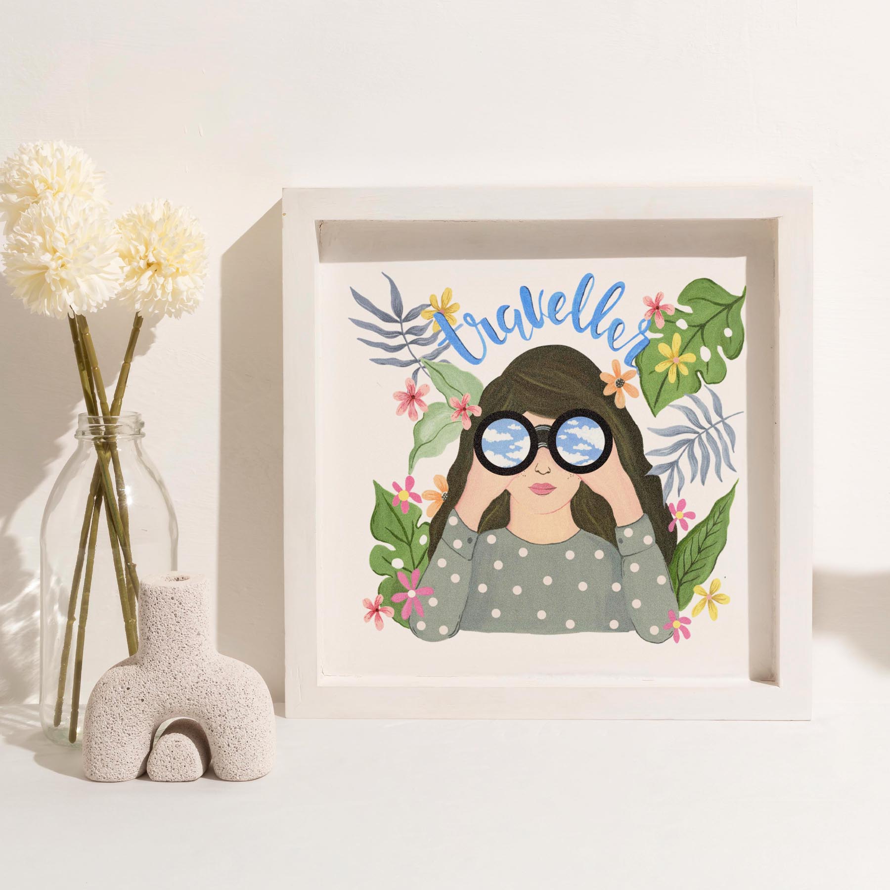 Traveller Girl Mini Wall Art Frame (Table Top Mount)