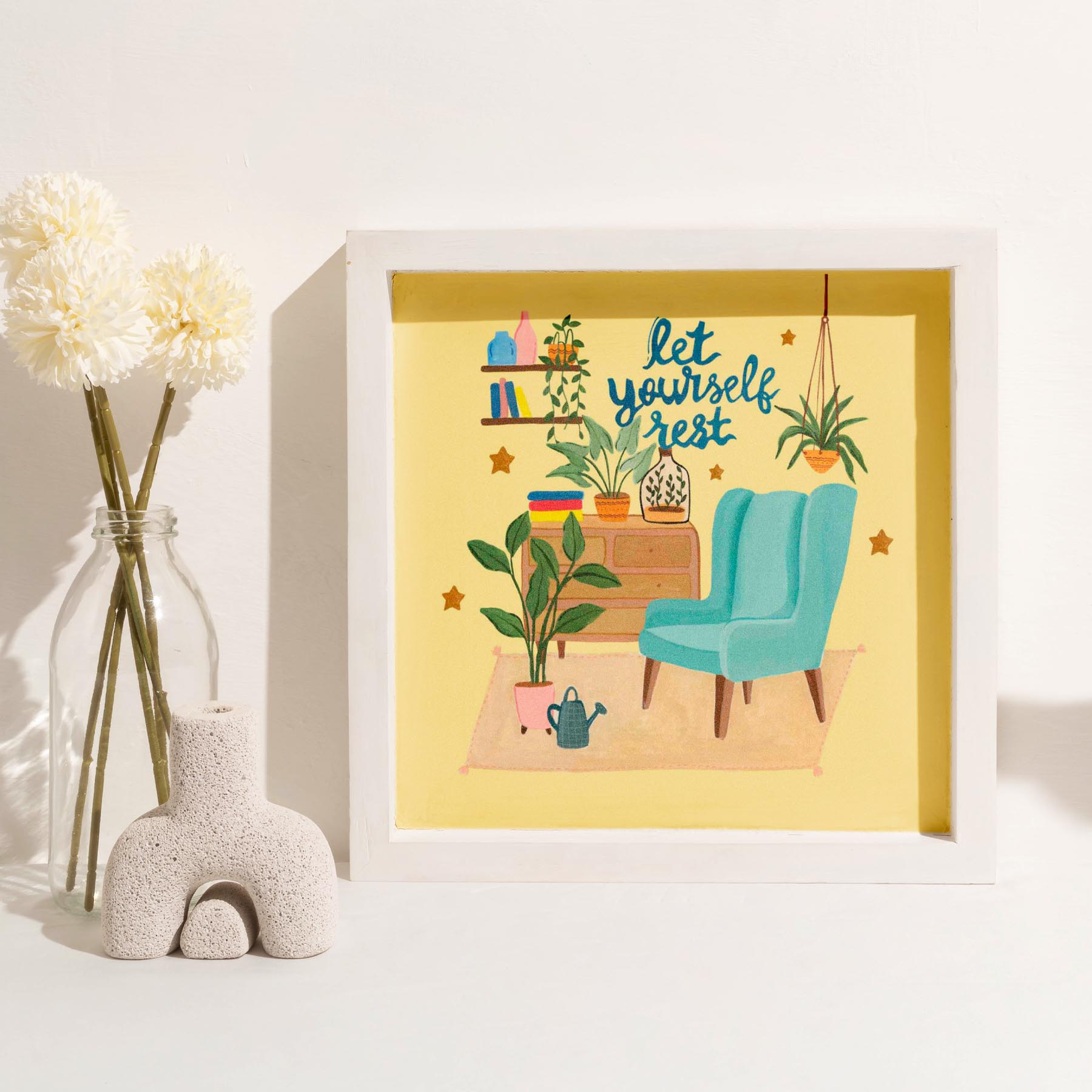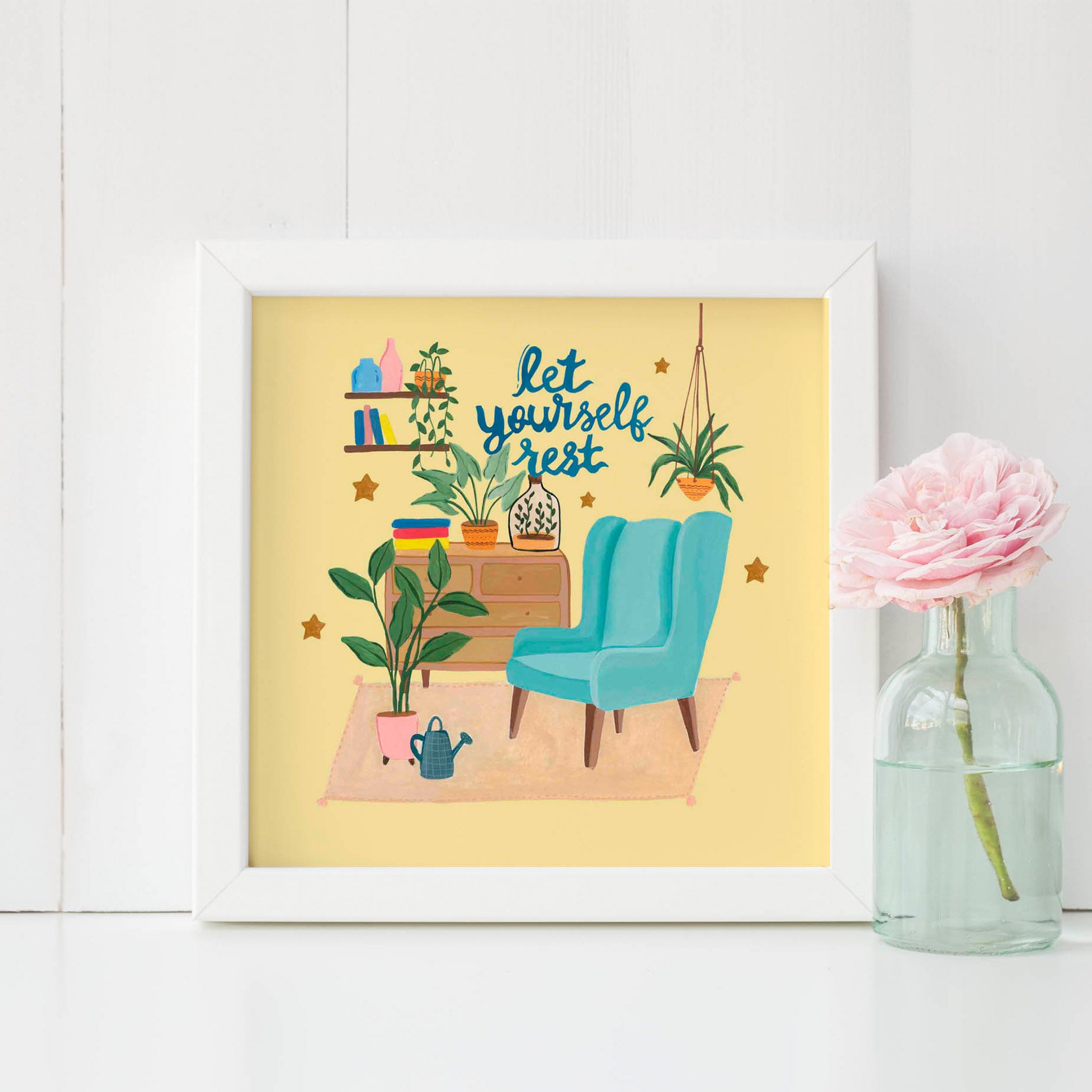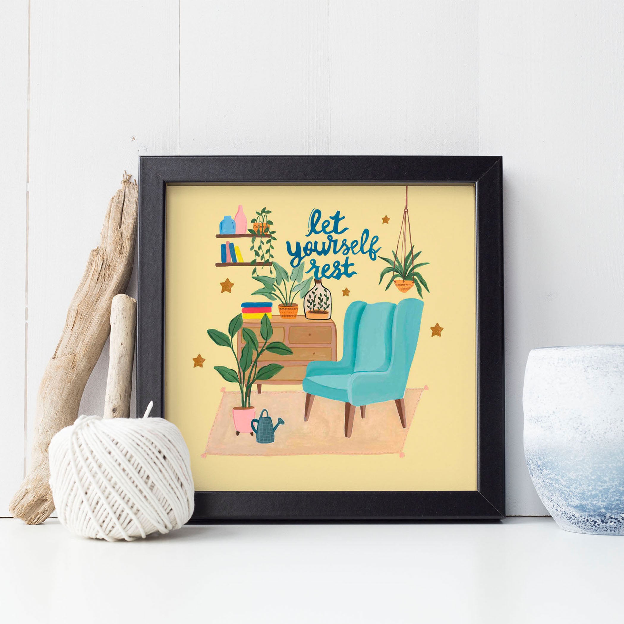 A self care themed wall art. High quality art prints on fine art paper. This is an illustrated art print created from an original gouache painting.