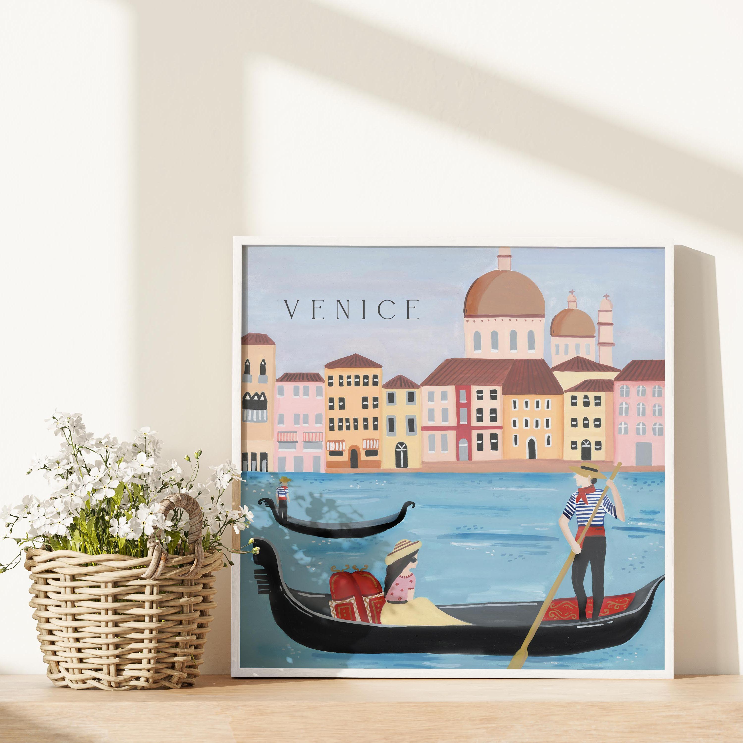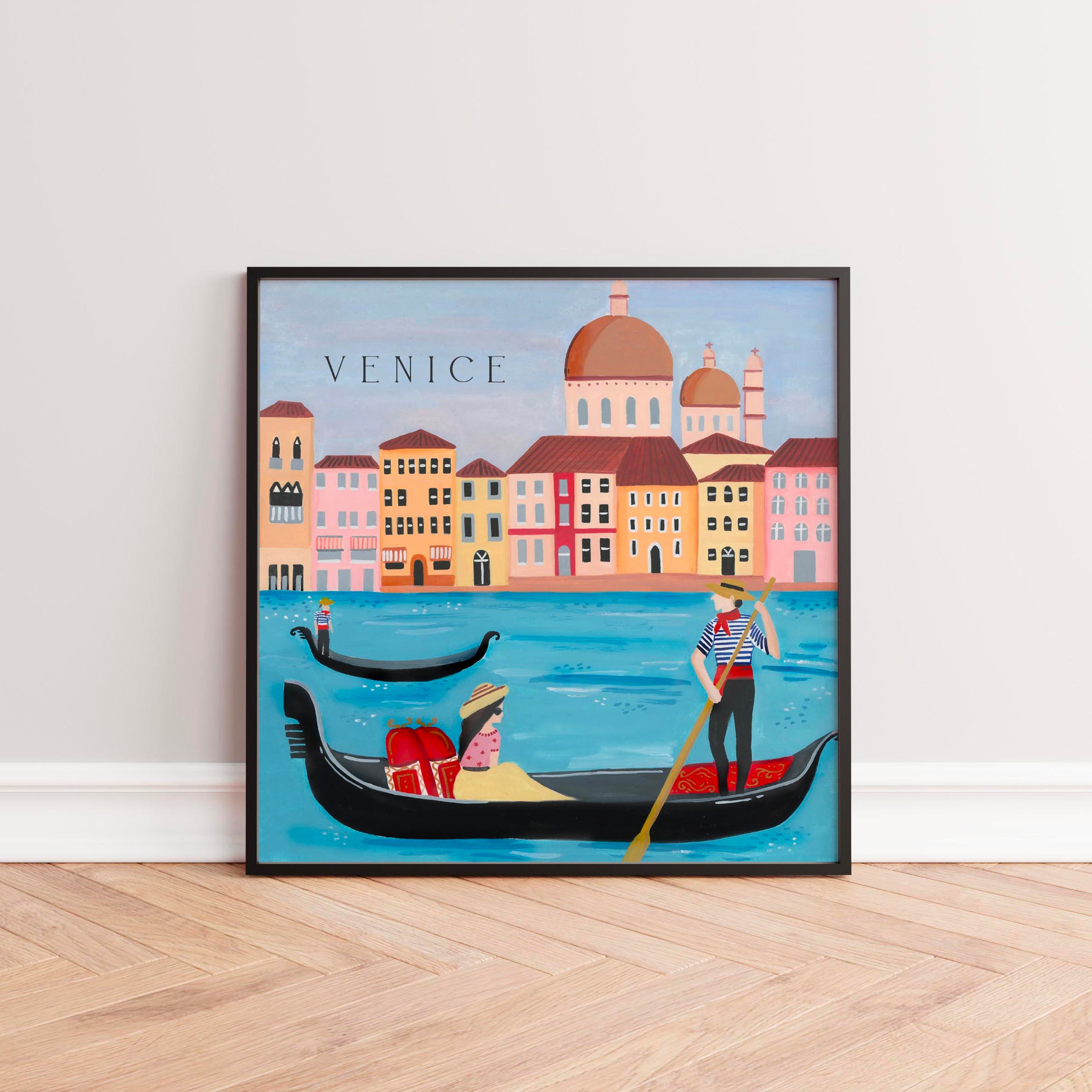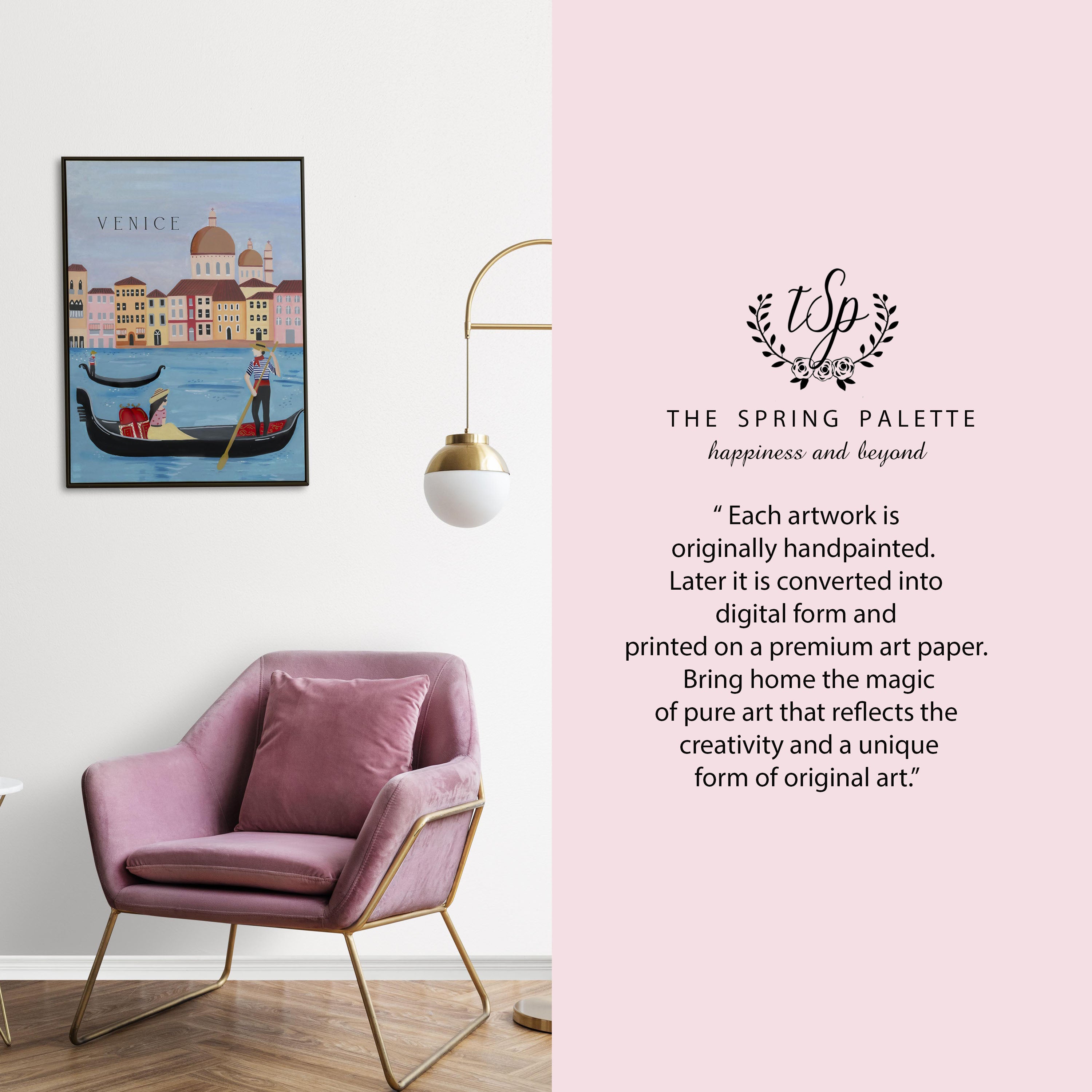 The painting features the picturesque canals of Venice, with their charming and colorful buildings lining the waterways. The depiction of the city's winding canals and stunning architecture captures the essence of Venice's unique beauty and character.