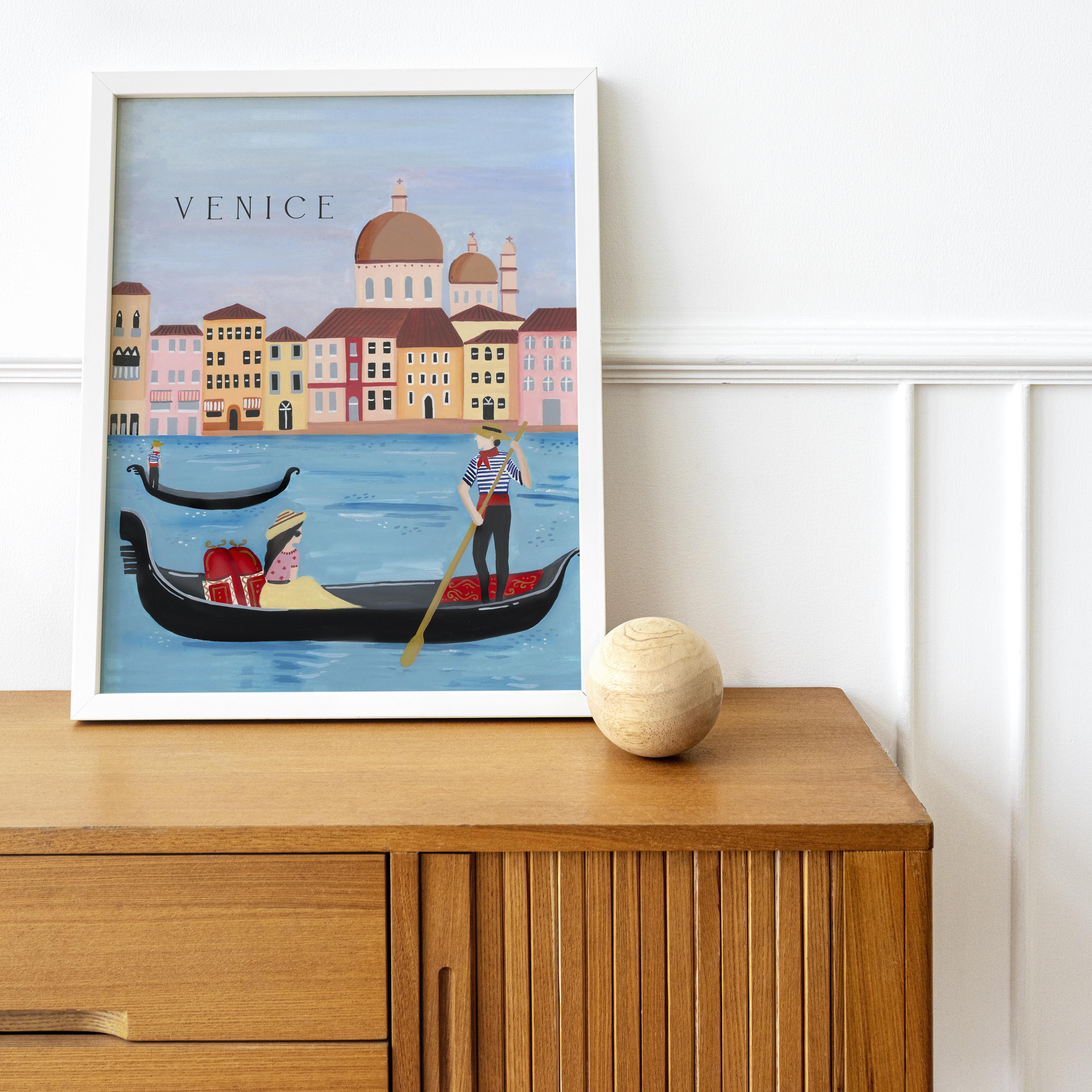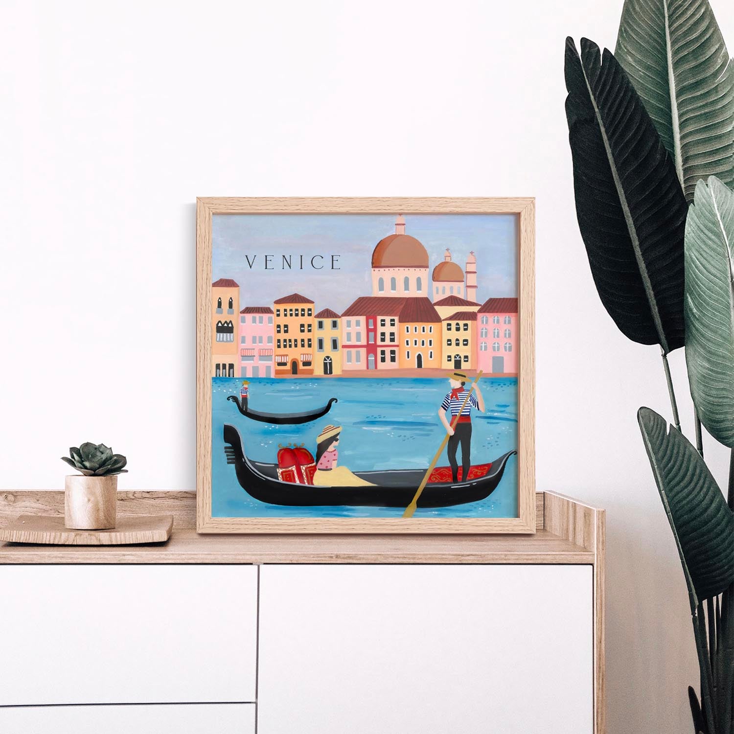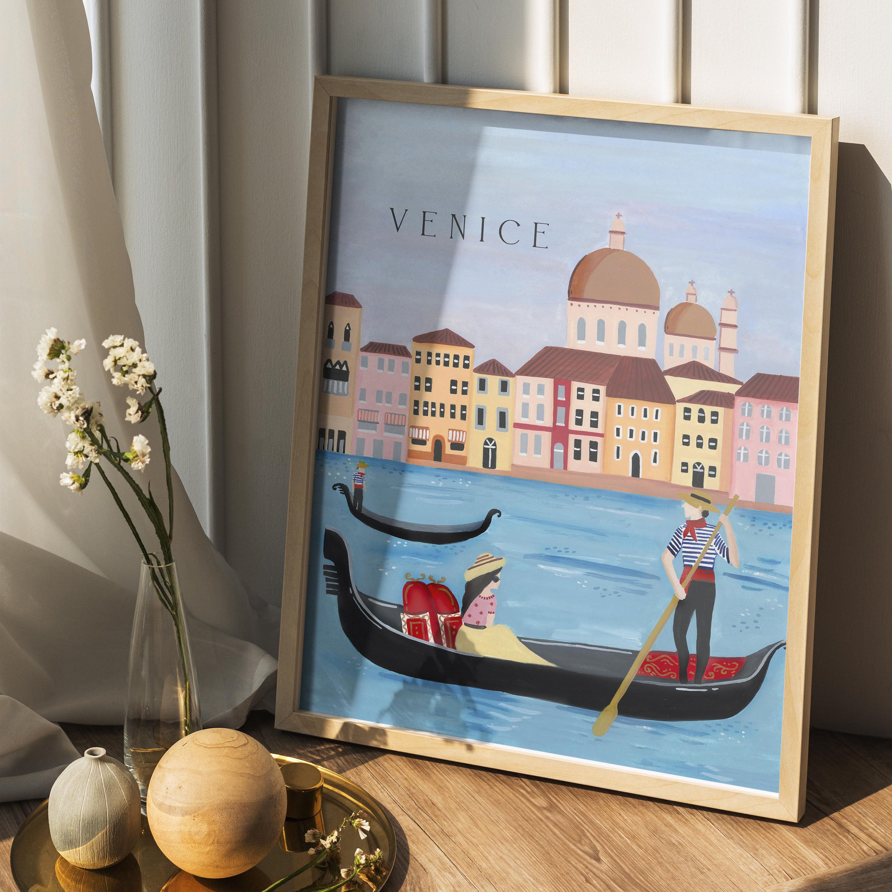 The painting features the picturesque canals of Venice, with their charming and colorful buildings lining the waterways. The depiction of the city's winding canals and stunning architecture captures the essence of Venice's unique beauty and character.