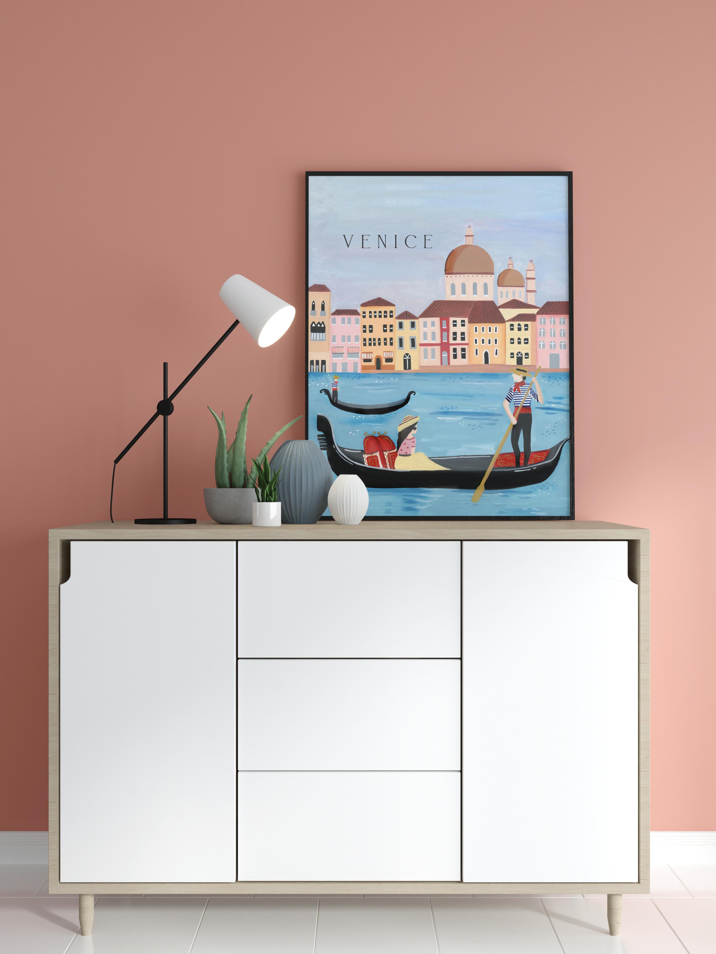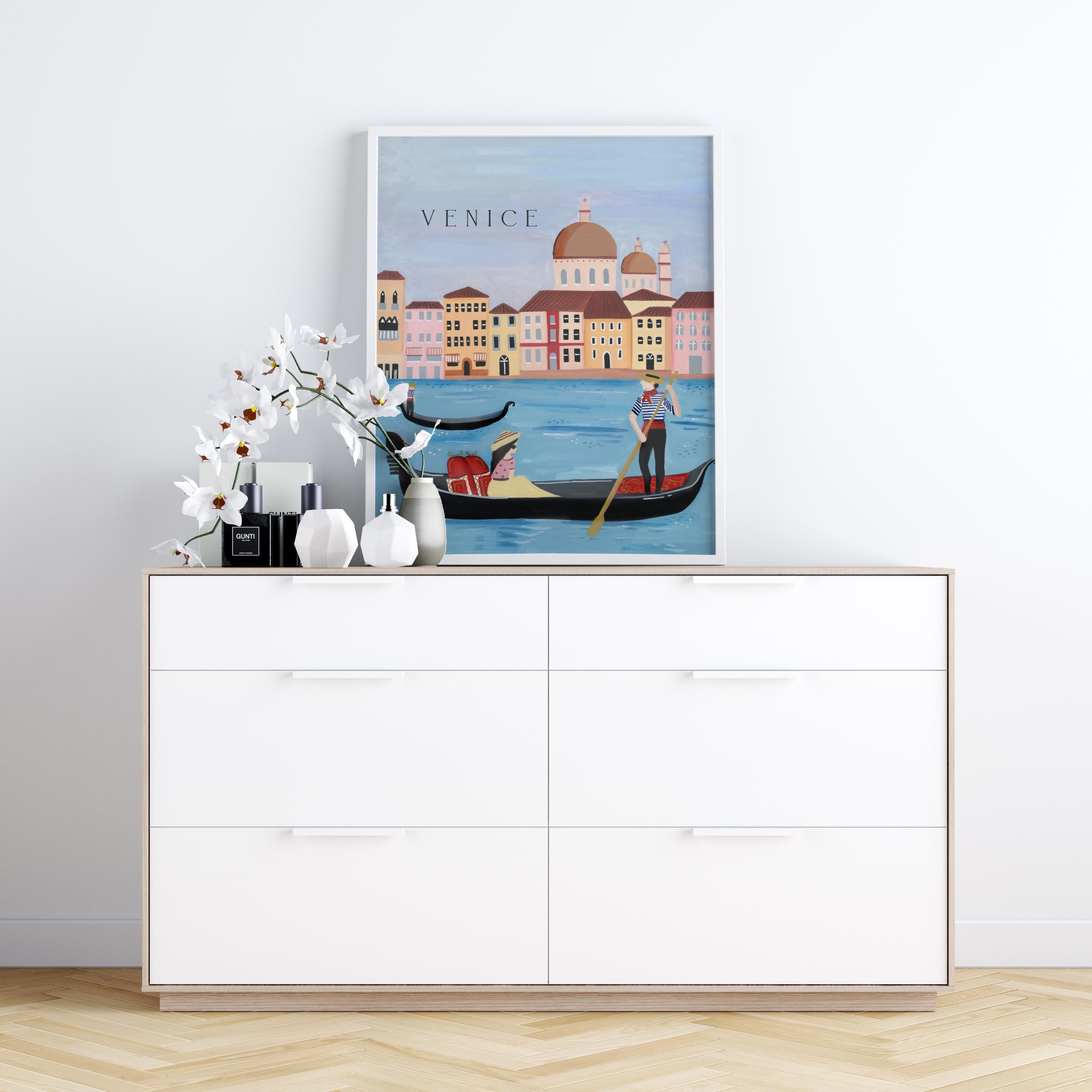 In summary, this wall painting of Venice, its canals, and gondola ride is a captivating and inspiring piece of art that is sure to transport anyone who sees it to the enchanting and romantic city of Venice, Italy.