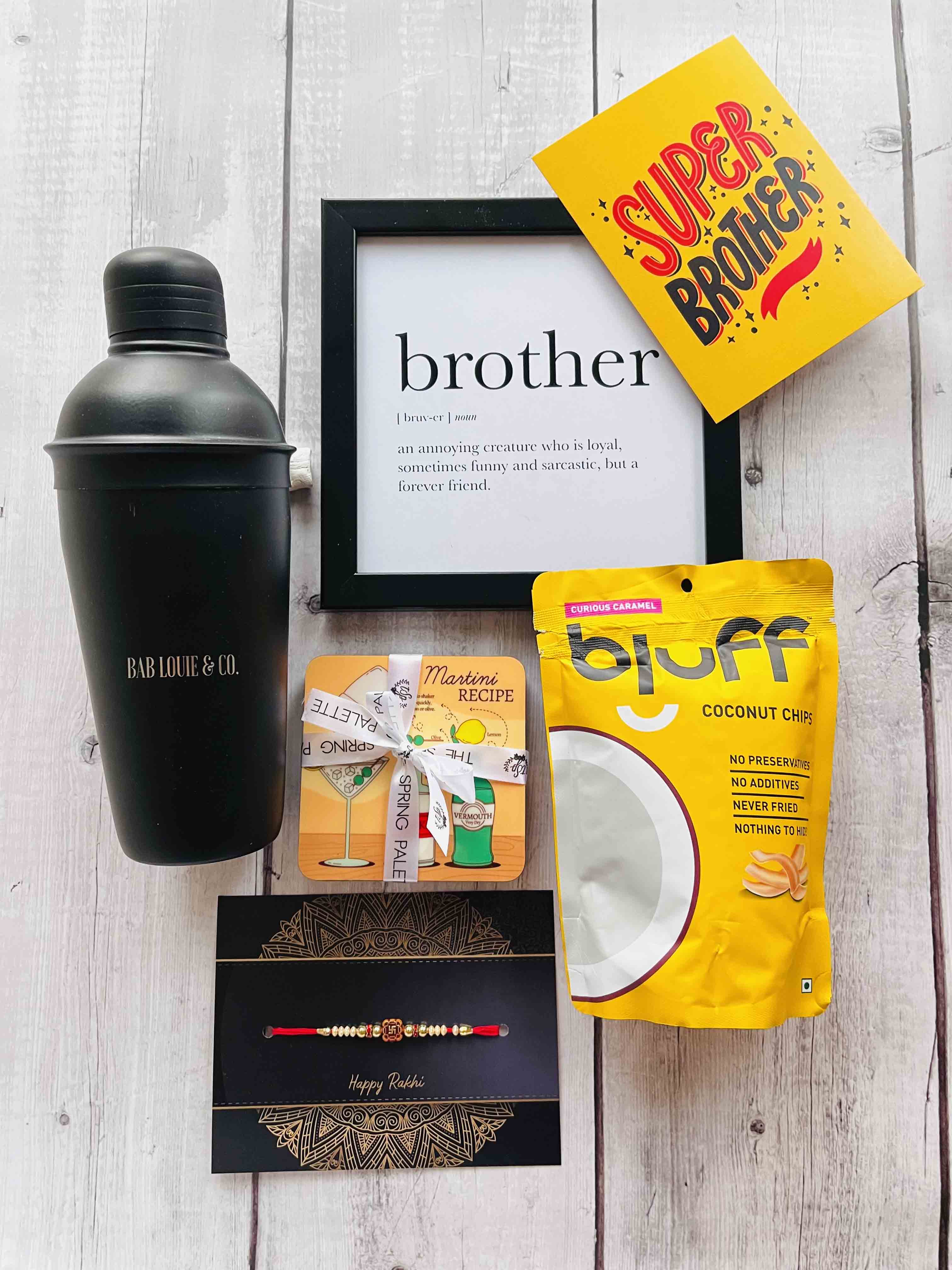 - While there are plenty of products in the market, this gift hamper is unique as it has a unique and quirky desk frame reminding your brother how much you love him.