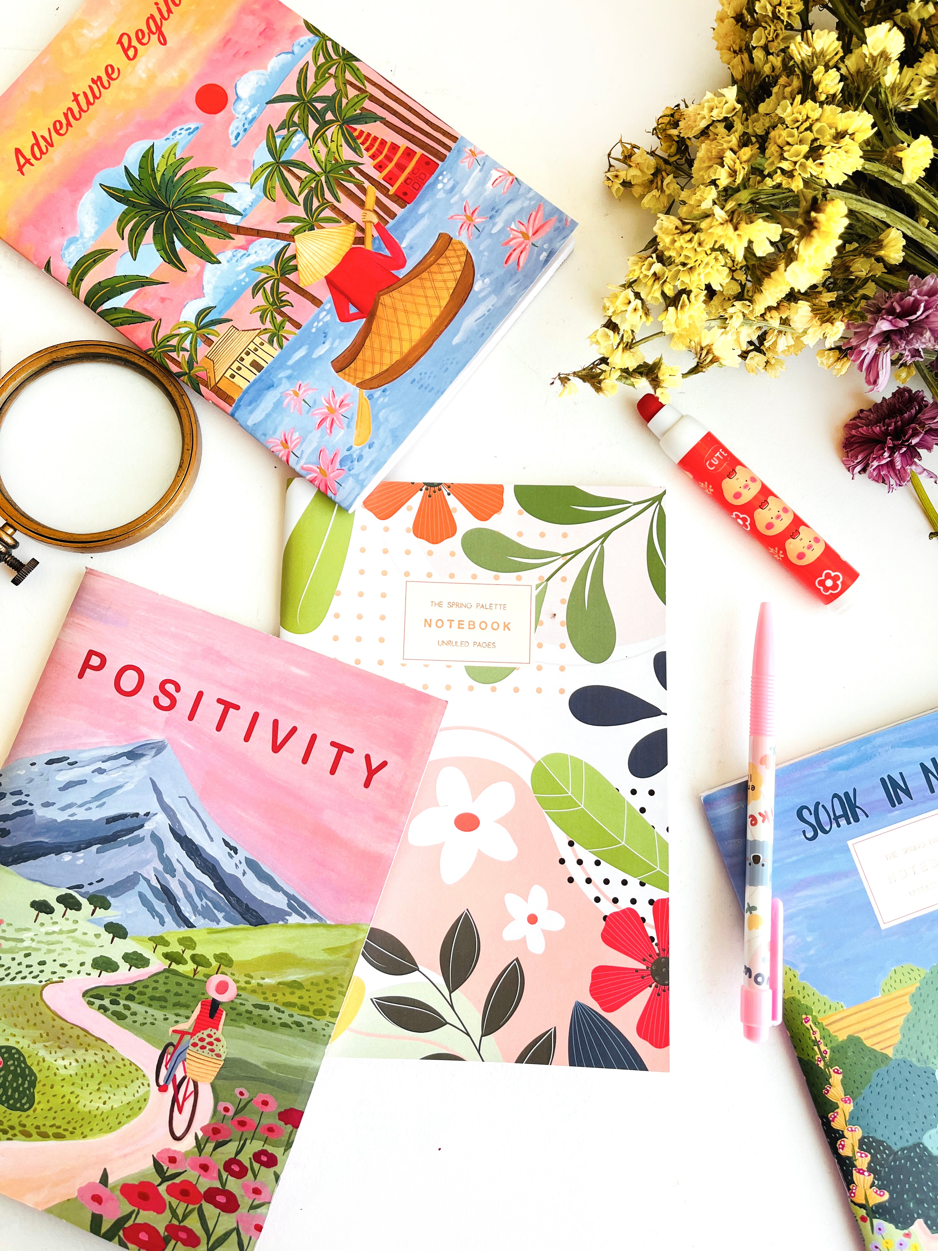 Little joys of life - celebrate each day with these fun notebooks. TSP Notebooks have been designed based on our original gouache illustrations. Our notebooks have been tastefully created and exude vibes of creativity, fun and adventure. Perfect companion to jot down your ideas, a quote, a poem or just doodling. These are sensory delights - treat to eyes and silky smooth!