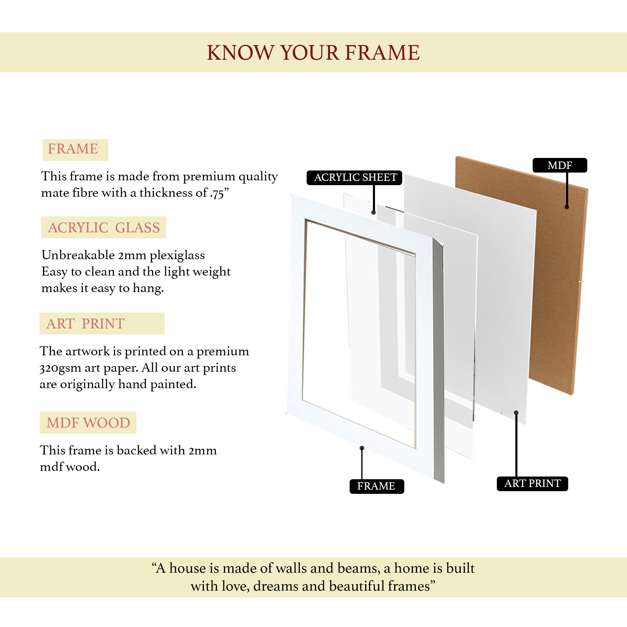 - [FRAME SPECIFICATIONS]: An acrylic sheet acts as a protective shield for the paintings and provides that glass like shine | Frame is made of engineered wood | MDF back | Sawtooth Hanging Clip