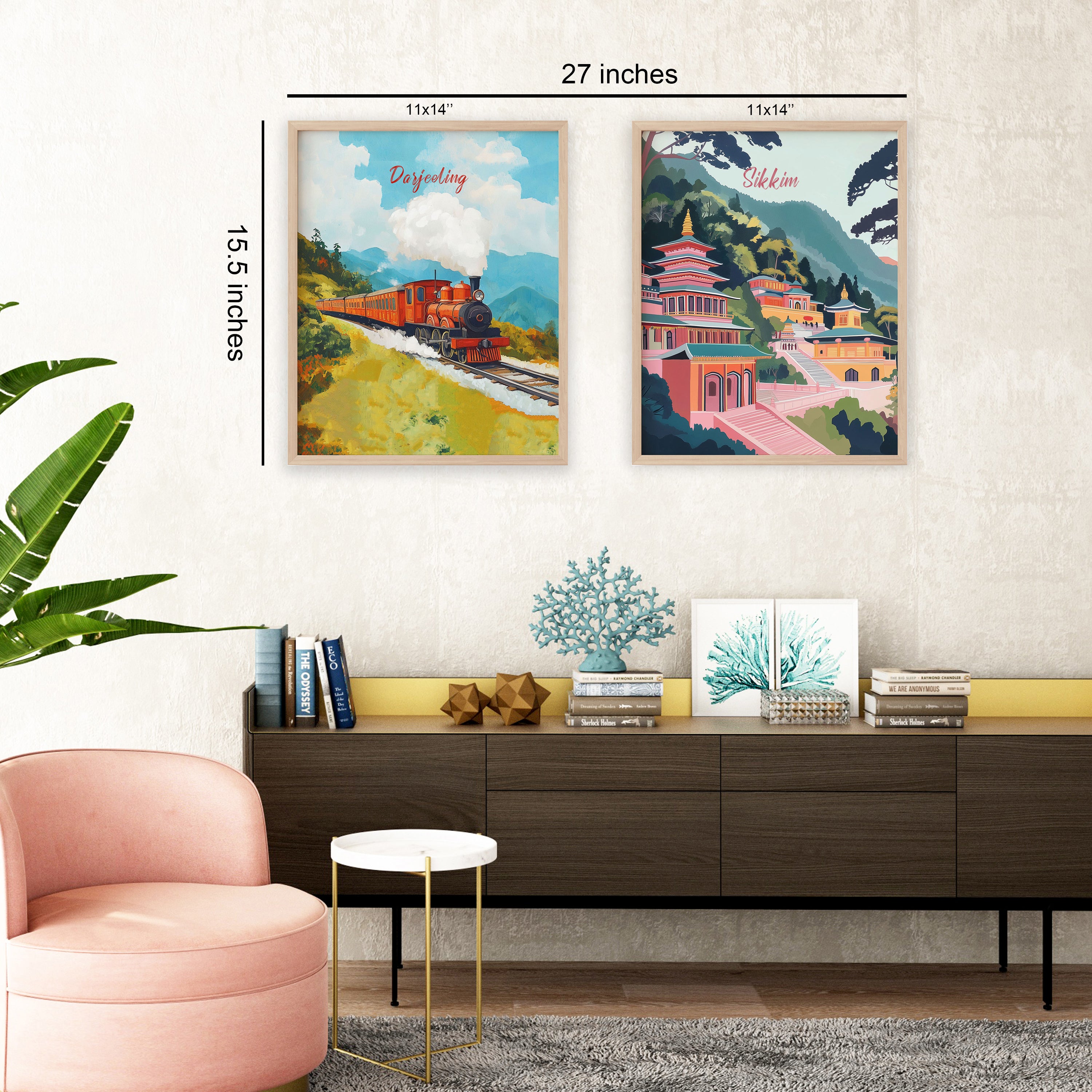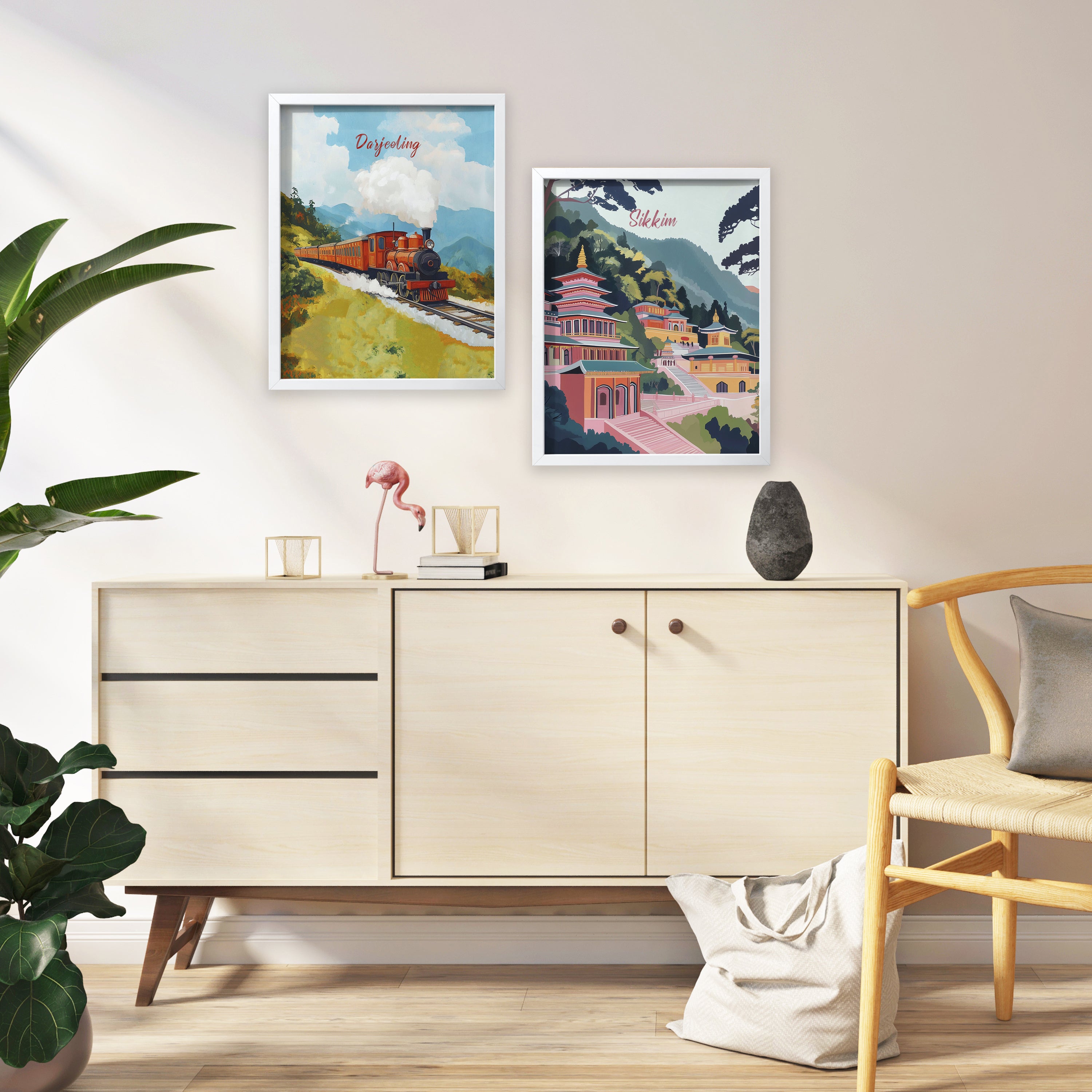 Step into a world of timeless charm with this enchanting set of hand-painted artworks featuring Darjeeling and Sikkim. The Darjeeling frame captures the nostalgic journey of the iconic toy train winding through lush hills, evoking memories of simpler times and scenic travels. The Sikkim artwork celebrates the spiritual tranquility and vibrant architecture of its serene monasteries, nestled among the Himalayan ranges. Together, these pieces transport you to the heart of India’s northeast, blending wanderlust with warmth and cultural richness. Perfect for adding a soulful, story-filled touch to your living space. Curated collection designed for your lovely walls based on original hand-painted illustrations of TSP: