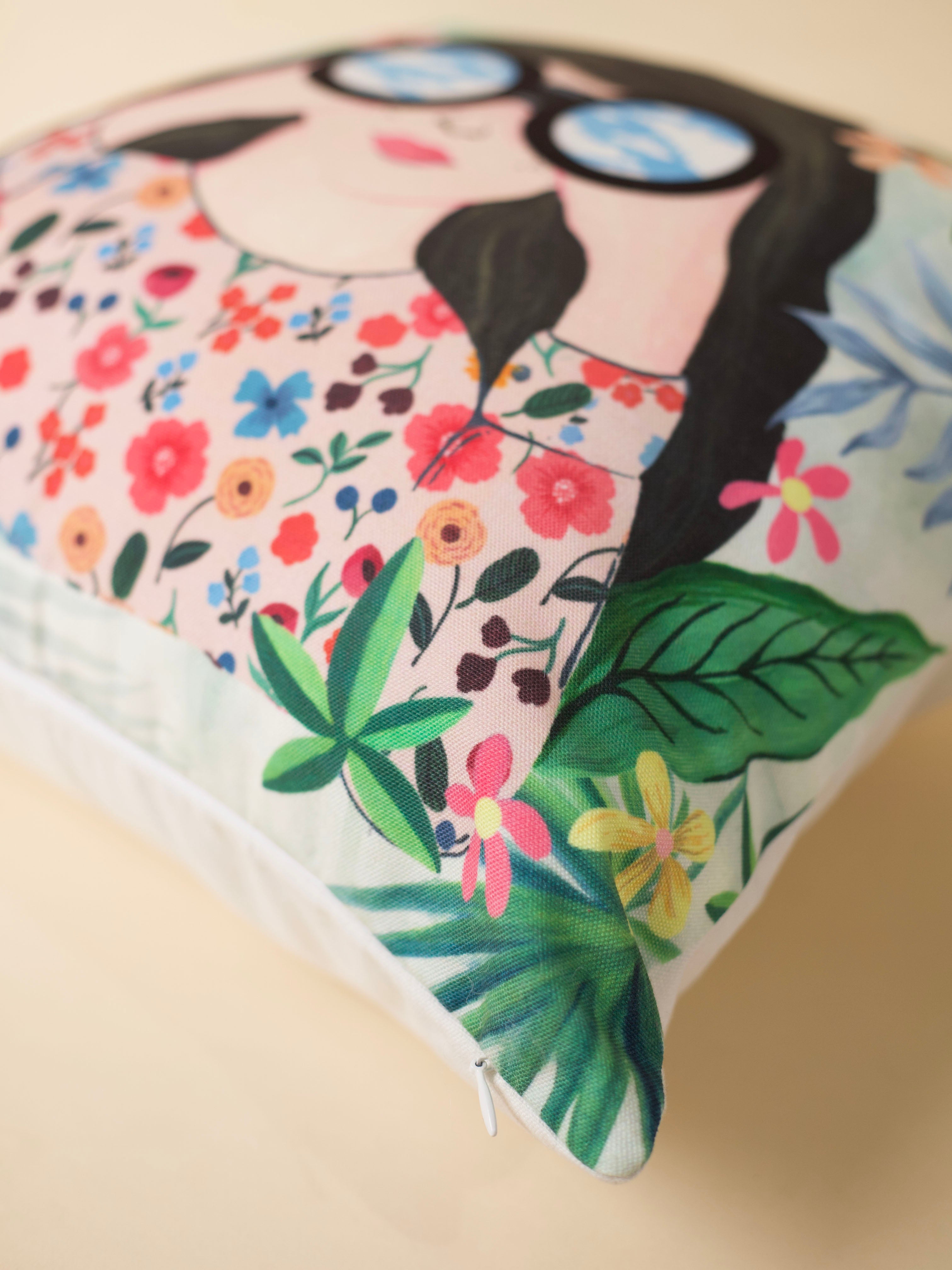 Eye-catching illustration of our explorer girl lend this throw pillow a uniquely decorative touch.