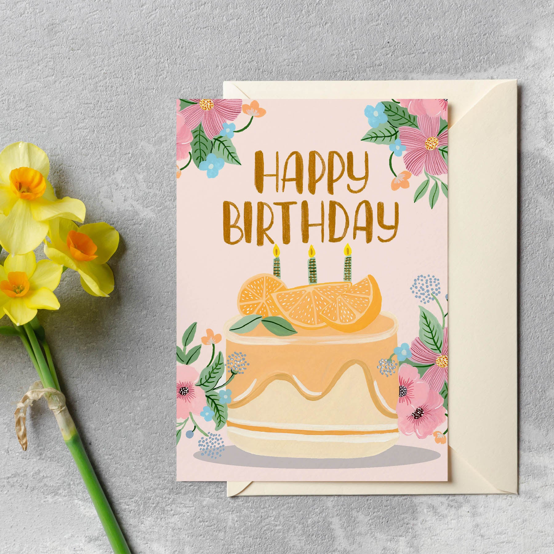 Floral Cake Birthday Greeting Card - The Spring Palette