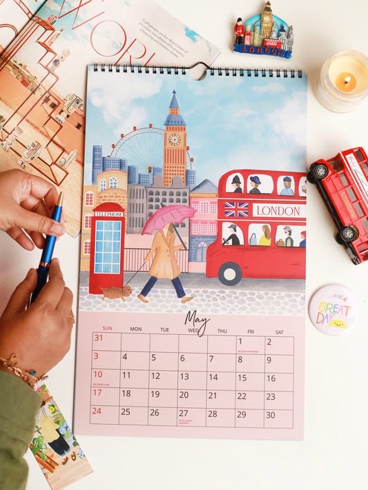 This beautifully curated Happiness Gift Box is perfect for dreamers, planners, explorers, and anyone who finds joy in wanderlust. Packed with thoughtfully illustrated goodies, it features the 2026 Travel Wall Calendar, charming notebooks, scenic postcards, pastel sticky notes, vibrant bookmarks, a travel themed framed artwork, luggage tag, and playful sticker sheet. Each item is designed to spark creativity and bring the magic of new destinations into everyday moments.