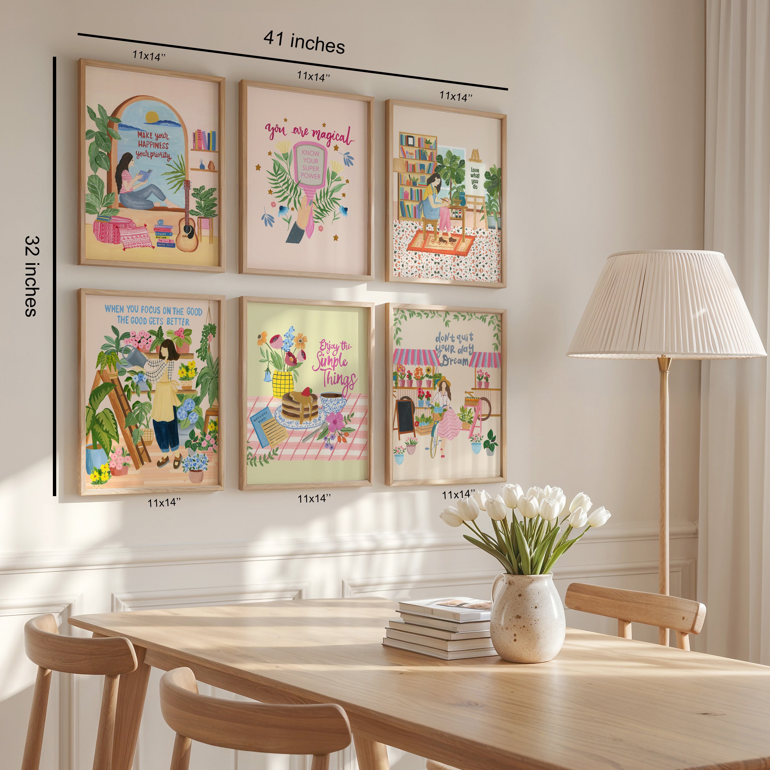 With soft colors and thoughtful details, this collection creates a warm statement wall that inspires positivity and comfort perfect for dining spaces, living rooms, studios, or any corner that celebrates intentional living.