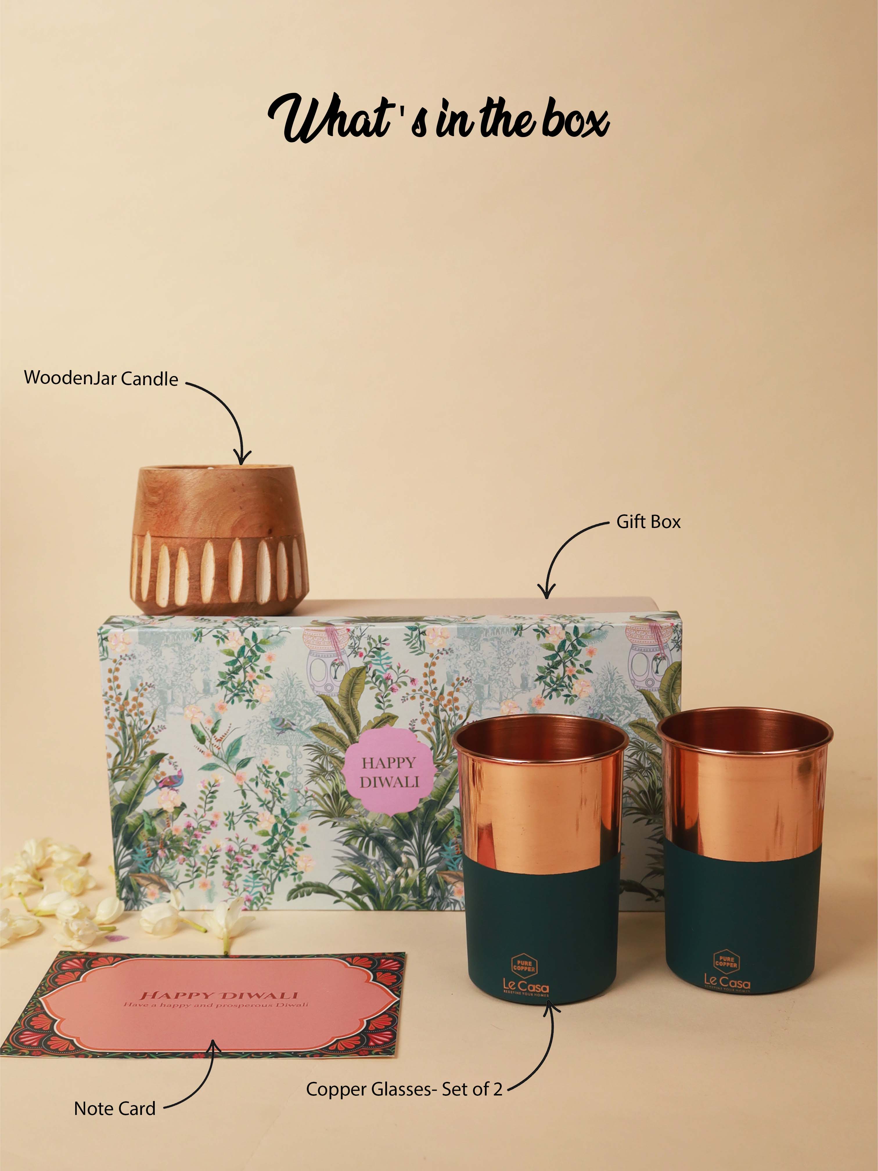 Light up festive moments with The Spring Palette’s graceful Diwali hamper, featuring copper tumblers and a soothing candle in a beautifully designed floral box. ✨🌿