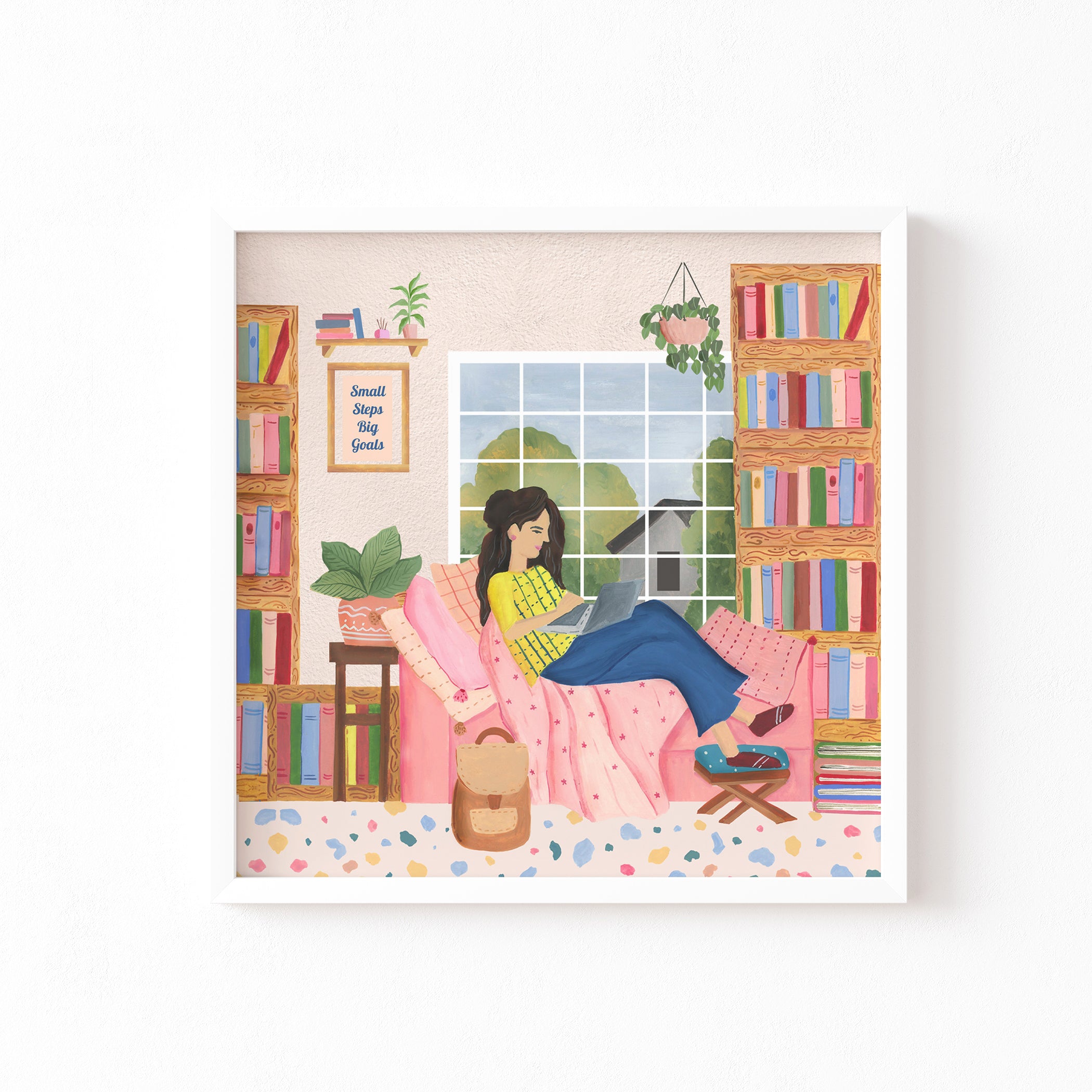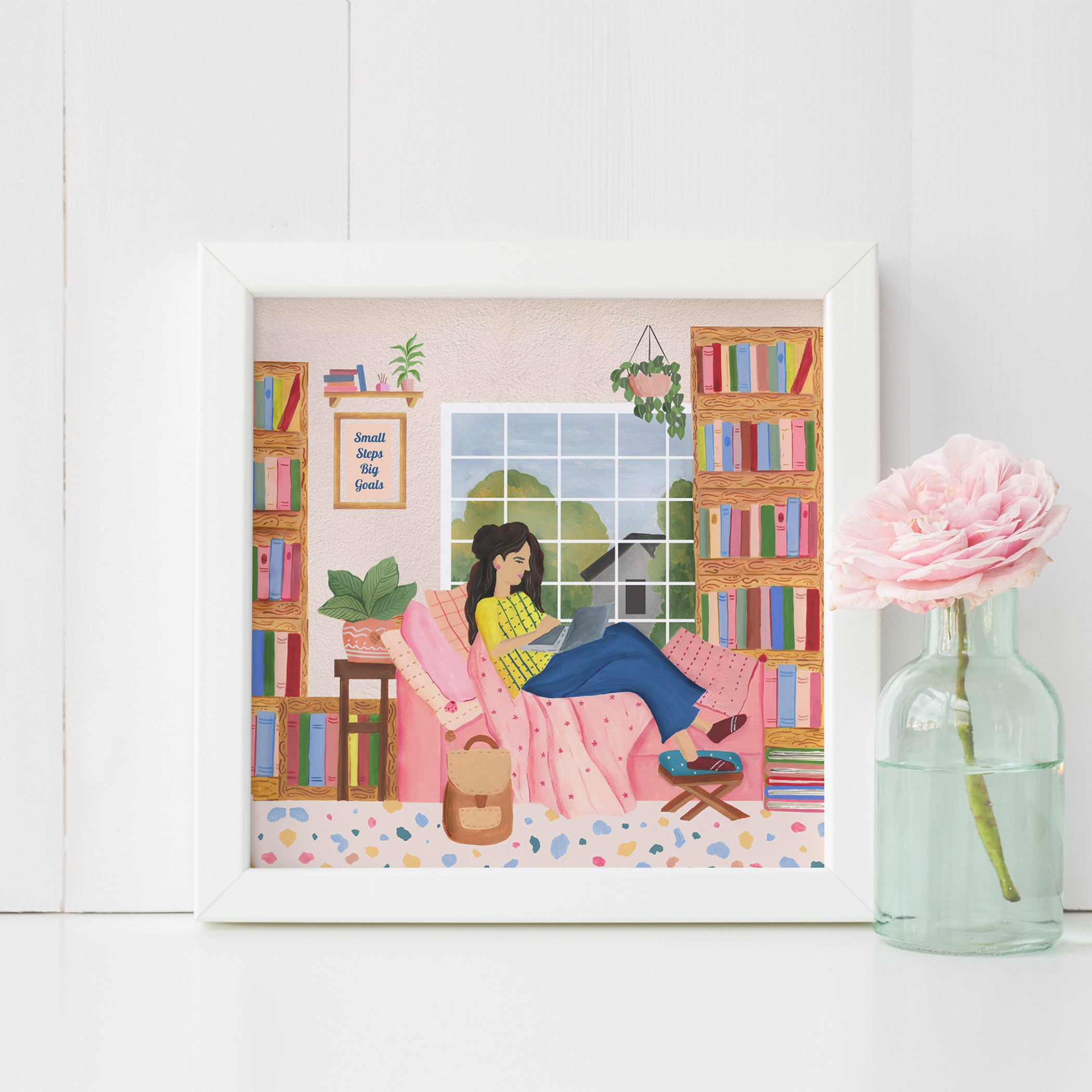 A self-care themed wall art. High quality art prints on fine art paper. This is an illustrated art print created from an original gouache painting.