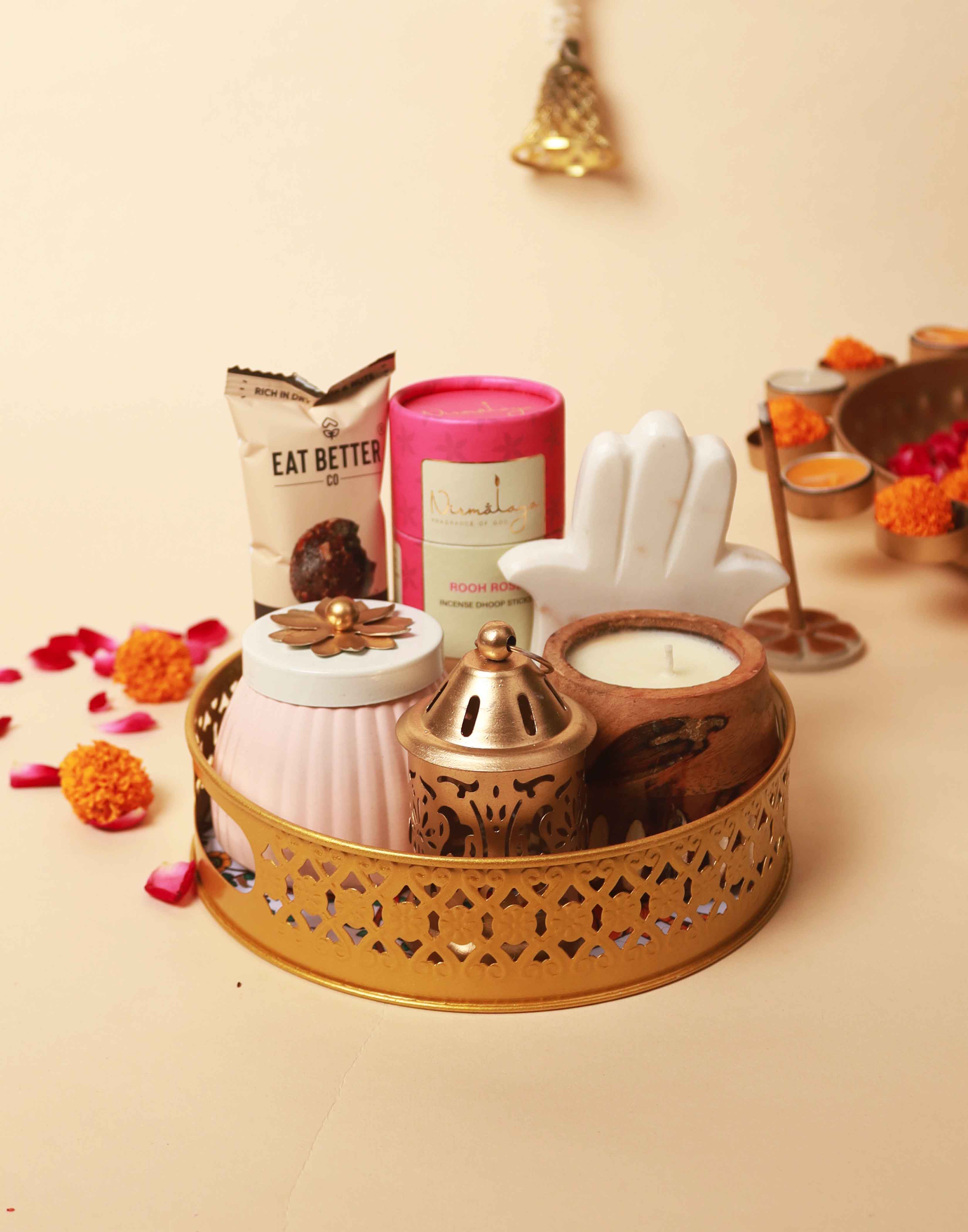 Celebrate the season of light with The Spring Palette’s luxurious Diwali hamper in a festive Metal Round Thaal. ✨🌼