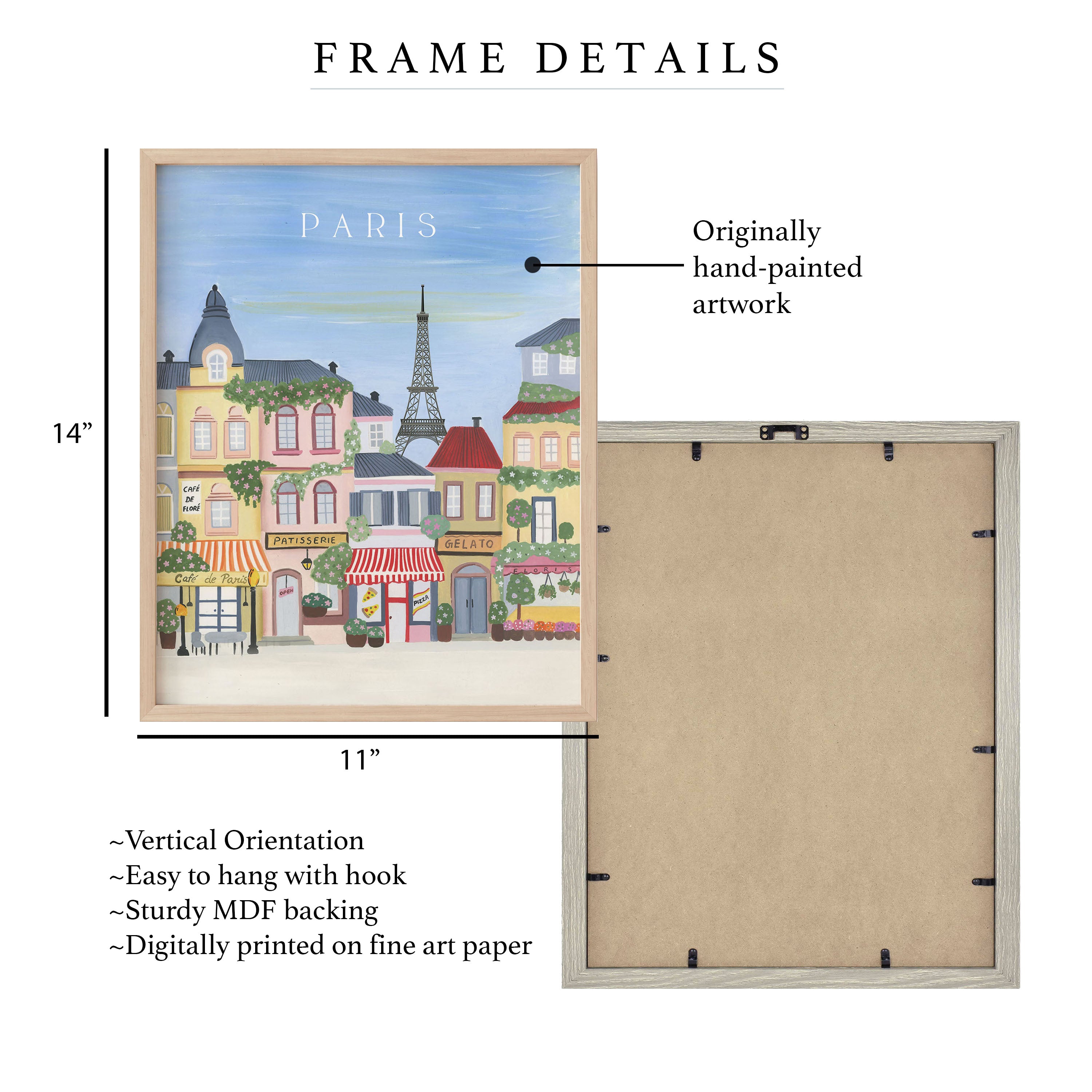 - Easy to hang on walls with sawtooth hook