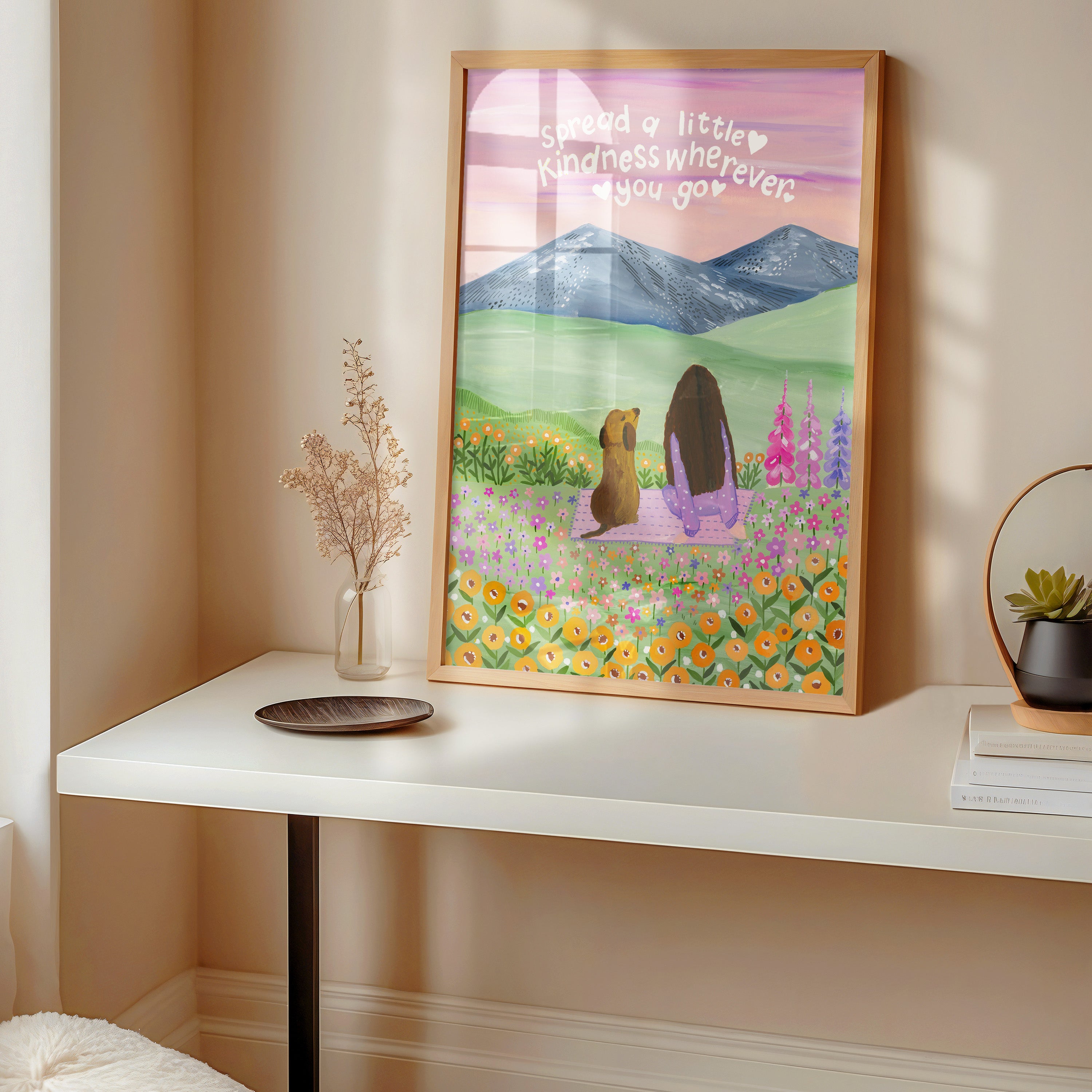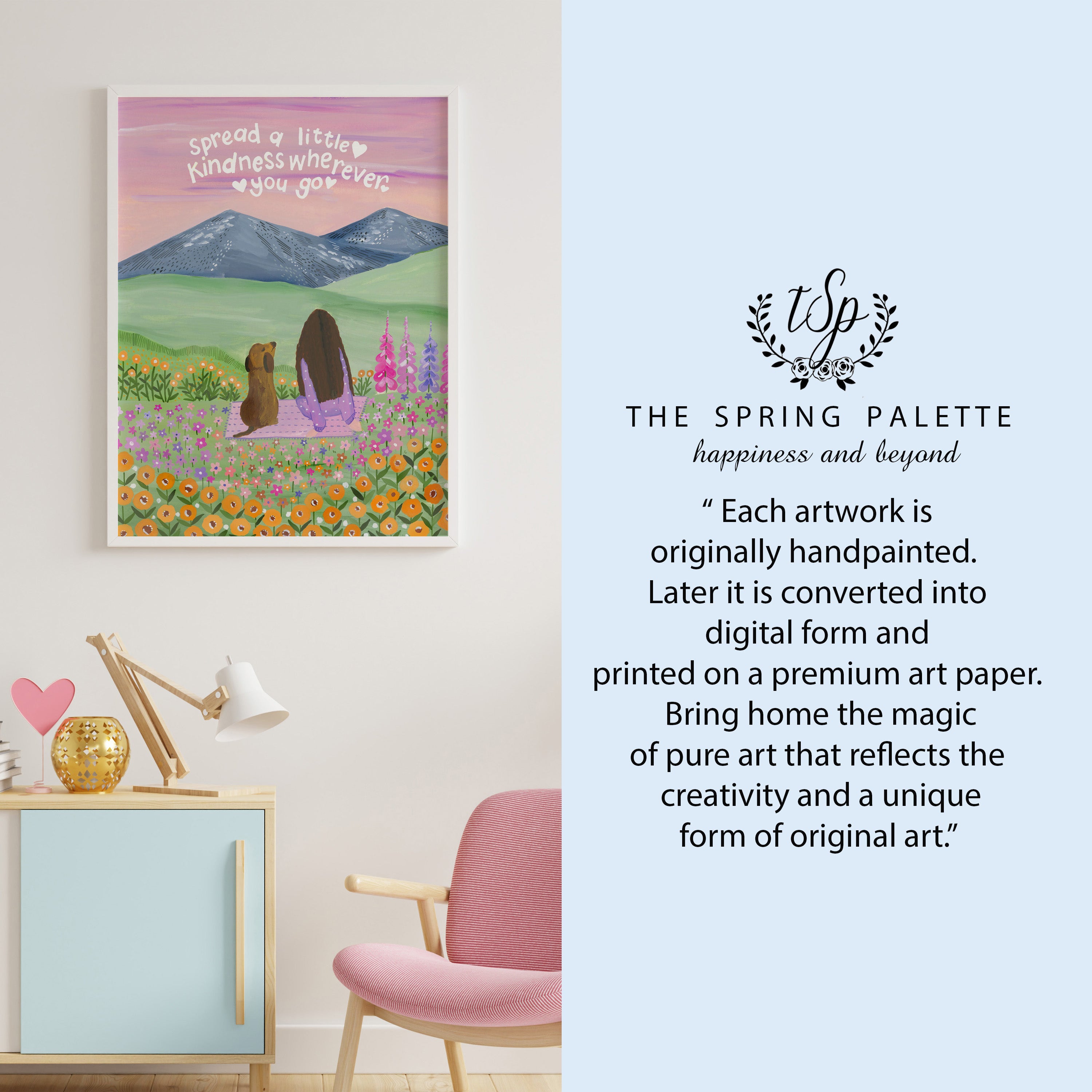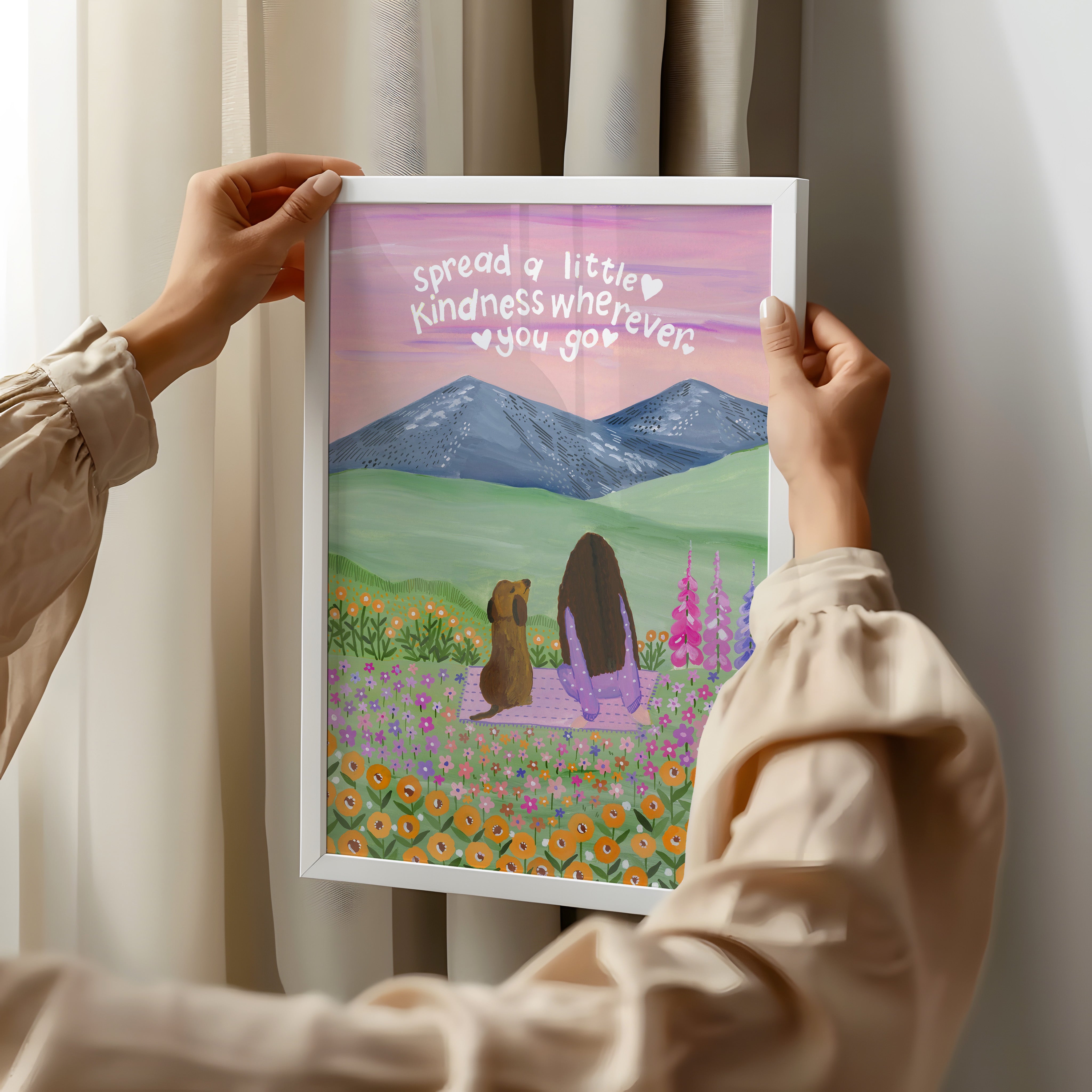 With its calming colors and heartfelt message, this artwork brings comfort and positivity to any space β a tender reminder to lead with compassion, wherever life takes you. πΈβ¨